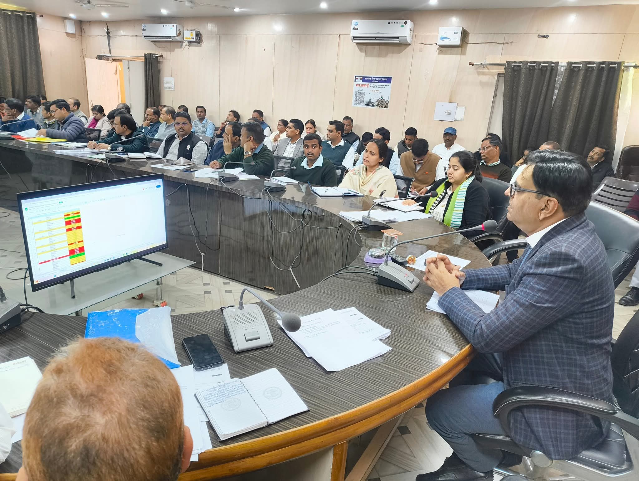 कलेक्टर श्री विवेक श्रोत्रिय की अध्यक्षता में आज कलेक्ट्रेट सभाकक्ष में टीएल बैठक आयोजित की गई। बैठक में कलेक्टर श्री श्रोत्रिय ने गणतंत्र दिवस समारोह, संकल्प से समाधान अभियान,माननीय मुख्य सचिव महोदय की समीक्षा बैठक, मतदाता सूची का विशेष गहन पुनरीक्षण, कलेक्टर महोदय की अध्यक्षता/सहभागिता में आयोजित की जाने वाली बैठकों की तिथि एवं समय निर्धारण, PMDDKY, फार्मर रजिस्ट्री, छिर धारा ग्राम योजना,DMF/DATCC की बैठक में दिए गए निर्देश, PMAY,आदि कर्मयोगी अभियान,सीएम हेल्पलाइन, कोर्ट प्रकरण, अवमानना प्रकरण,आयुष्मान भारत योजना, टी एल पत्रों पर की गई कार्यवाही , विगत टीएल बैठक में दिए निर्देशों पर की गई कार्यवाही की समीक्षा की तथा आवश्यक दिशा-निर्देश दिए।