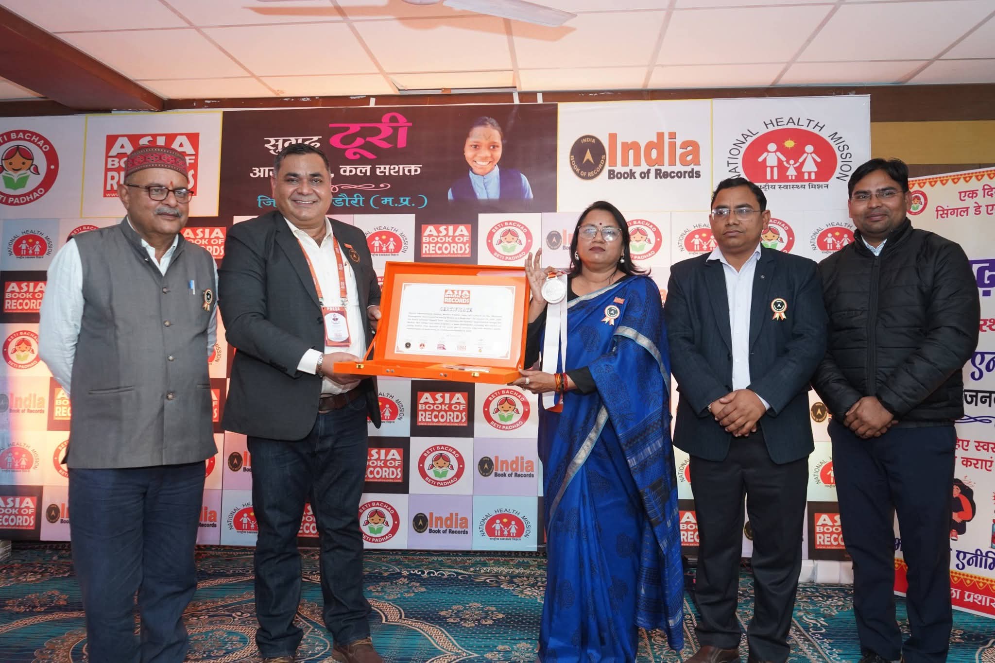 जिला डिंडौरी ने सार्वजनिक स्वास्थ्य एवं महिला सशक्तिकरण के क्षेत्र में एक ऐतिहासिक उपलब्धि अर्जित करते हुए नया कीर्तिमान स्थापित किया है। बेटी बचाओ, बेटी पढ़ाओ योजना अंतर्गत संचालित नवाचार “Sugadh Toori – Aaj Swasth, Kal Sashakt” अभियान के तहत जिले में एक ही दिन में 48,000 से अधिक बालिकाओं एवं महिलाओं का हीमोग्लोबिन परीक्षण किया गया। इस उपलब्धि के साथ जिला प्रशासन डिंडौरी ने Asia Book of Records एवं India Book of Records—दोनों में अपना नाम दर्ज कराया।