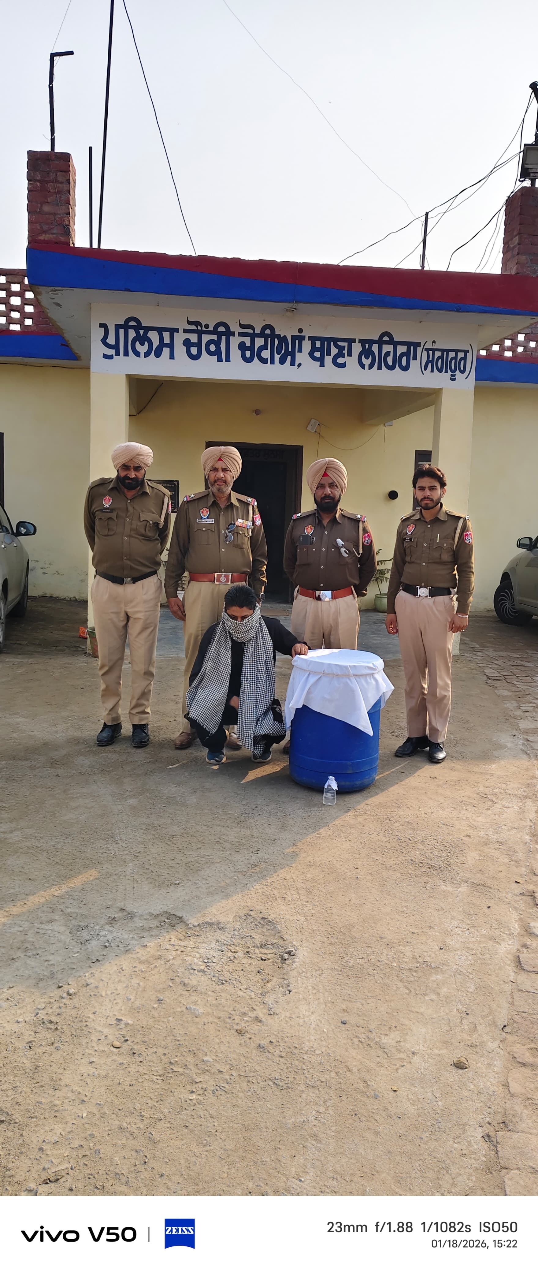 एंटी-ड्रग कैंपेन के तहत लहरा पुलिस की कार्रवाई, संगतपुरा से अवैध देसी शराब बरामद।