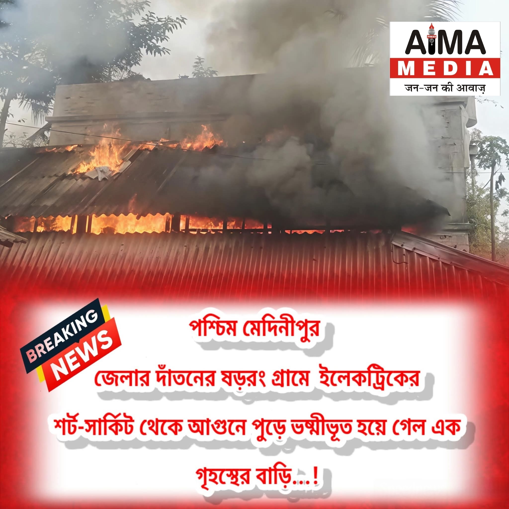 দাঁতনে ইলেকট্রিকের শর্ট-সার্কিট থেকে আগুনে পুড়ে ভষ্মীভূত হয়ে গেল এক গৃহস্থের বাড়ি!