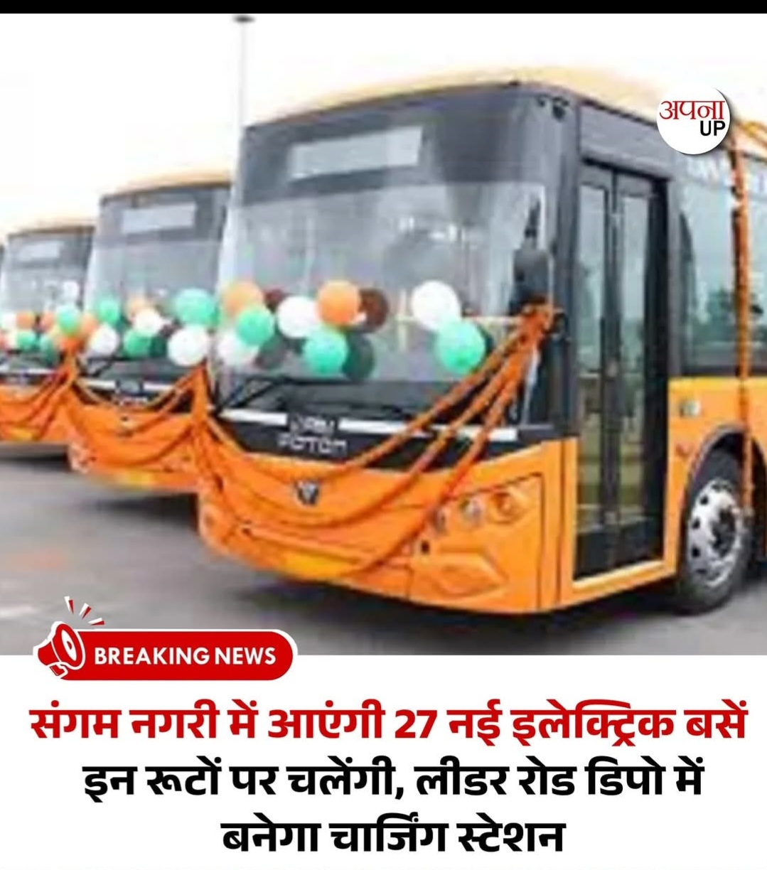 संगम नगरी में आएंगी 27 नई इलेक्ट्रिक बसें, इन रूटों पर चलेंगी, लीडर रोड डिपो में बनेगा चार्जिंग स्टेशन