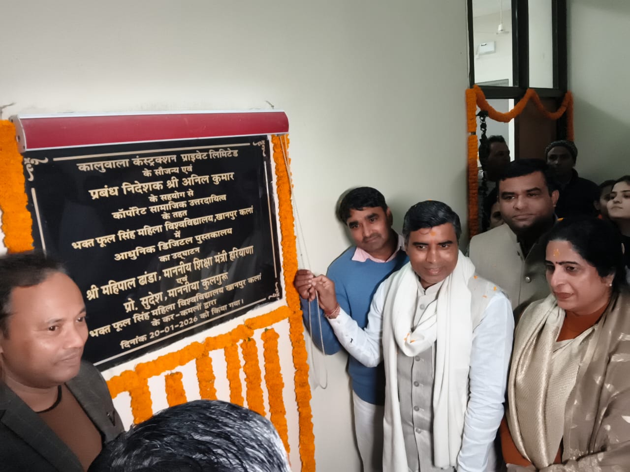 भगत फूल सिंह महिला विश्वविद्यालय, खानपुर कलां में मंगलवार को शिक्षा, संस्कृति और अध्यात्म का ऐतिहासिक संगम देखने को मिला। हरियाणा सरकार के शिक्षा मंत्री श्री महिपाल सिंह ढांडा ने कॉरपोरेट सोशल रिस्पॉन्सिबिलिटी (सीएसआर) के अंतर्गत लगभग 90 लाख रुपये की लागत से निर्मित अत्याधुनिक डिजिटल लाइब्रेरी का भव्य उद्घाटन किया। इस अवसर पर जनता टीवी के तत्वावधान में आयोजित भजन क्लबिंग कार्यक्रम ने पूरे परिसर को भक्तिमय और उल्लासपूर्ण वातावरण से सराबोर कर दिया।