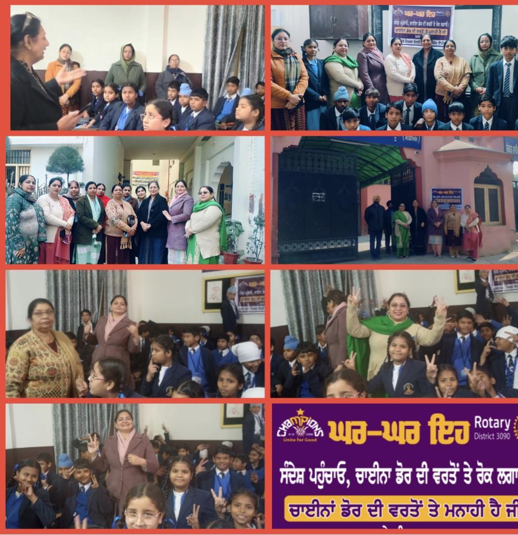 ਫਰੀਦਕੋਟ;22 ਜਨਵਰੀ (ਕੰਵਲ ਸਰਾਂ) ਫਰੀਦਕੋਟ ਵਿੱਚ ਹਾਲ ਹੀ ਵਿੱਚ ਹੋਂਦ ਵਿੱਚ ਆਇਆ ਰੋਟਰੀ ਕਲੱਬ ਫਰੀਦਕੋਟ ਚੈਂਪੀਅਨ (ਲੇਡੀਜ਼ ਵਿੰਗ) ਨੇ ਅੱਜ ਕਲੱਬ ਪ੍ਰਧਾਨ ਮੰਜੂ ਸੁਖੀਜਾ ਤੇ ਸੁਰਿੰਦਰਪਾਲ ਸਰਾਂ ਦੀ ਯੋਗ ਅਗਵਾਈ ਵਿੱਚ ਚਾਈਨਾ ਡੋਰ ਦੀ ਵਰਤੋਂ ਨਾ ਕਰਨ ਦੀ ਸ਼ਹਿਰ ਨਿਵਾਸੀਆ ਨੂੰ ਅਪੀਲ ਕੀਤੀ ਹੈ। ਇਹ ਡੋਰ ਦੇ ਖੌਫਨਾਕ ਨਤੀਜੇ ਹਰ ਰੋਜ਼ ਦੇਖਣ ਸੁਣਨ ਨੂੰ ਮਿਲਦੇ ਹਨ ।ਮੰਜੂ ਸੁਖੀਜਾ ਨੇ ਦੁਕਾਨਦਾਰ ਵੀਰਾਂ ਨੂੰ ਵੀ ਅਪੀਲ ਕੀਤੀ ਹੈ ਸਰਕਾਰ ਵੱਲੋ ਪਹਿਲਾਂ ਹੀ ਪਾਬੰਧੀ ਲਗਾਈ ਗਈ ਹੈ ਇਸ ਨੂੰ ਵੇਚਿਆ ਨਾ ਜਾਵੇ। ਇਸ ਦੀ ਕੜੀ ਤਹਿਤ ਅੱਜ ਰੋਟਰੀ ਕਲੱਬ ਫਰੀਦਕੋਟ ਚੈਂਪੀਅਨ ਨੇ ਸੰਗਤ ਸਾਹਿਬ ਭਾਈ ਫੈਰੂ ਖਾਲਸਾ ਸੀਨੀਅਰ ਸੈਕੰਡਰੀ ਸਕੂਲ ਫ਼ਰੀਦਕੋਟ ਵਿਖੇ ਕਲੱਬ ਦੇ ਮੈਂਬਰਾਂ ਨੇ ਜਾ ਕੇ ਬੱਚਿਆ ਨੂੰ ਚਾਈਨਾ ਡੋਰ ਦੀ ਵਰਤੋਂ ਨਾ ਕਰਨ ਕਿਹਾ ਅਤੇ ਹੀ ਇਸ ਡੋਰ ਦੇ ਖੌਫਨਾਕ ਨਤੀਜੇ ਜੋ ਸਾਹਮਣੇ ਆ ਰਹੇ ਹਨ ਦੇ ਬਾਰੇ ਜਾਣੂ ਕਰਵਾਇਆ। ਇਸ ਸਬੰਧ ਵਿੱਚ ਬੱਚਿਆ ਵੱਲੋਂ ਇਹ ਪ੍ਰਣ ਕੀਤਾ ਗਿਆ ਕਿ ਬਸੰਤ ਵਾਲੇ ਦਿਨ ਇਸ ਦੀ ਵਰਤੋ ਨਹੀ ਕਰਨਗੇ। ਇਸ ਤੋਂ ਇਲਾਵਾ ਕਲੱਬ ਵੱਲੋ ਸ਼ਹਿਰ ਵਿੱਚ ਬੈਨਰ ਲਗਾਏ ਗਏ ਚਾਈਨਾ ਡੋਰ ਦੀ ਵਰਤੋਂ ਨਾ ਕੀਤੀ ਜਾਵੇ। ਇਸ ਮੌਕੇ ਜਿੰਨਾ ਮੈਂਬਰਾਂ ਨੇ ਇਸ ਮੁਹਿੰਮ ਵਿਚ ਸ਼ਿਰਕਤ ਕੀਤੀ ਉਹਨਾਂ ਵਿੱਚ ਬਲਜੀਤ ਸ਼ਰਮਾ, ਤੇਜਿੰਦਰਪਾਲ ਕੌਰ ਮਾਨ ਅਤੇ ਰਜਨੀ ਮਹਿਤਾ ਆਦਿ ਮੈਂਬਰਾਂ ਤੋ ਇਲਾਵਾ ਸਕੂਲ ਸਟਾਫ ਨੇ ਸ਼ਿਰਕਤ ਕੀਤੀ।