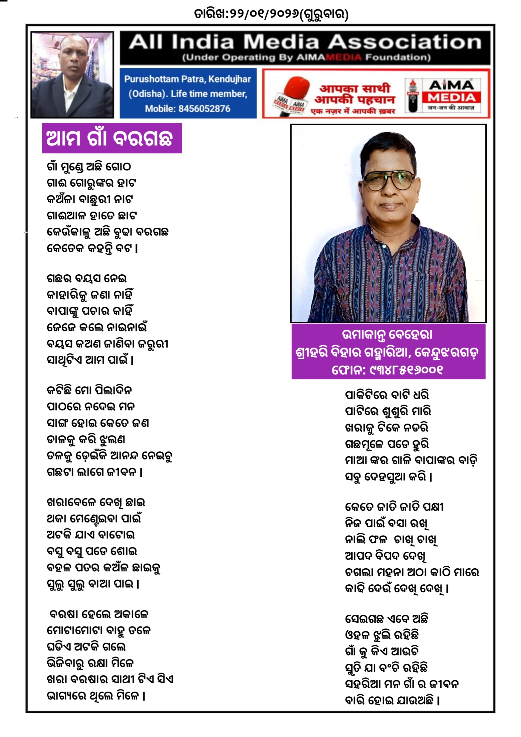 ଆମ ଗାଁ ବରଗଛ - ଉମାକାନ୍ତ ବେହେରା ଙ୍କ ଦ୍ଵାରା ରଚିତ କବିତା।