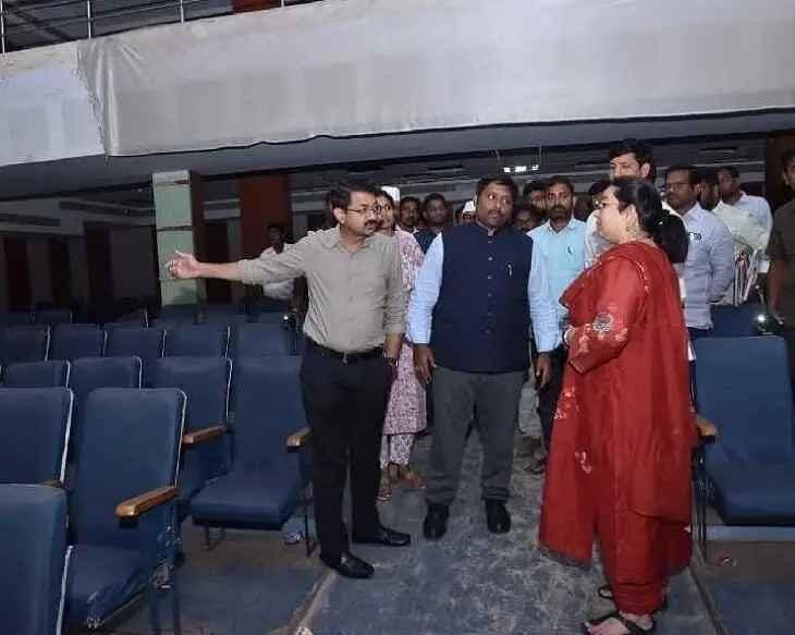 విజయనగరం ఆనంద గజపతి ఆడిటోరియాన్ని కలెక్టర్ ఎస్.రాంసుందర్ రెడ్డి, వి ఏం ఆర్ డి ఏ కమిషనర్ తేజ్ భరత్, ఏం ఎల్ ఏ అదితి గజపతి రాజు శుక్రవారం సందర్శించారు. ఆడిటోరియం లోపలి భాగాలు, బయటి పరిసరాలను పరిశీలించిన కలెక్టర్ మరమ్మతులు చేపట్టాల్సిన అవసరం ఉందని గుర్తించారు. సెంట్రల్ ఏసీ, విద్యుత్ కనెక్షన్లు, ఇంటీరియర్ డిజైన్, సీట్లు, తలుపులు, కిటికీలు, పెయింటింగ్ తదితర, పనులకు అంచనా వేయాలని ఆదేశించారు.