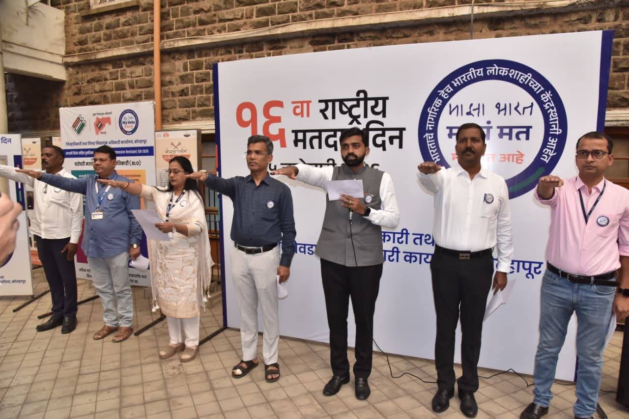 २५ जानेवारी या १६ व्या 'राष्ट्रीय मतदार दिना'च्या निमित्ताने संपूर्ण देशभर विविध कार्यक्रमांचे आयोजन करण्यात येत आहे. याच पार्श्वभूमीवर, कोल्हापूरचे जिल्हाधिकारी अमोल येडगे यांनी जिल्हाधिकारी कार्यालय प्रांगणात प्रशासनातील सर्व अधिकारी व कर्मचाऱ्यांसह मतदानाची सामूहिक प्रतिज्ञा घेतली.