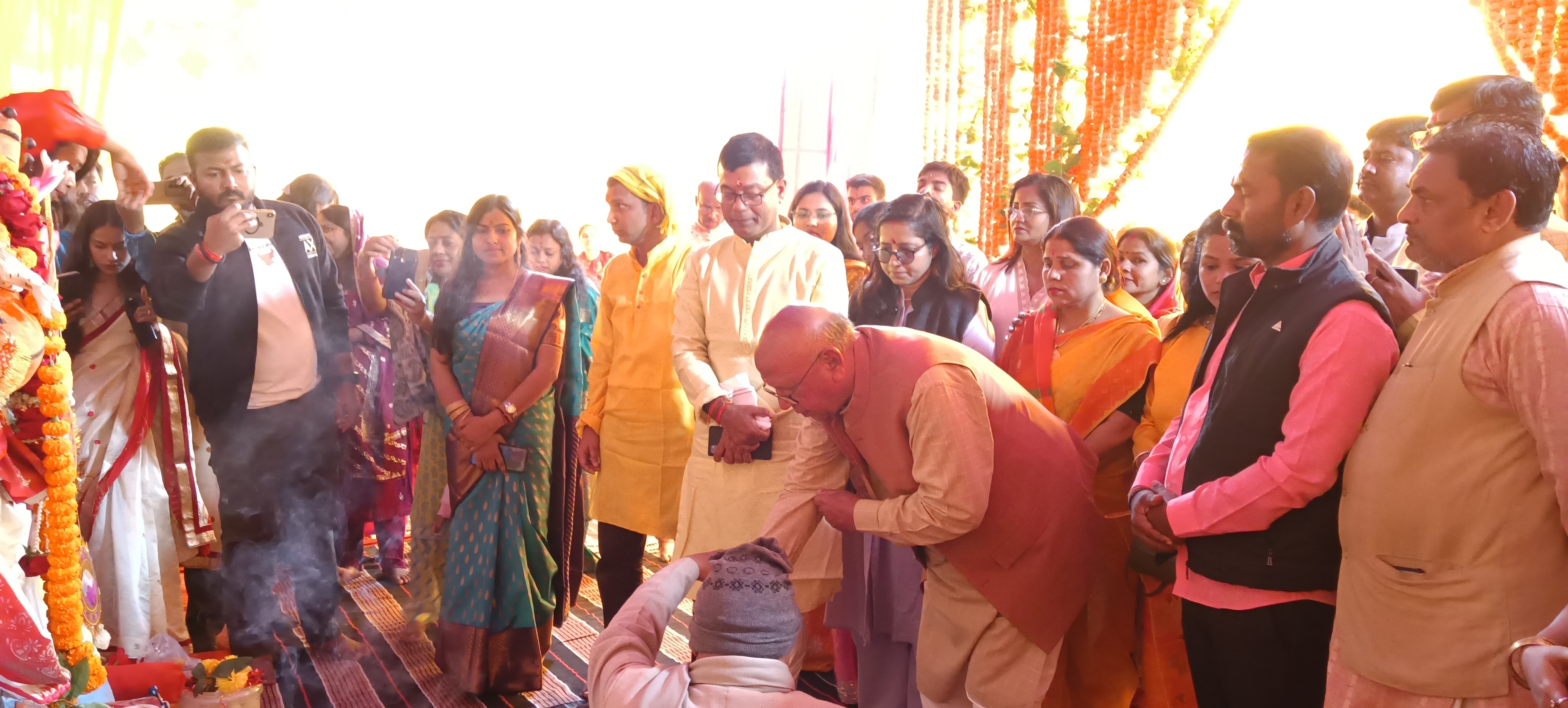 जमशेदपुर  । साकची स्थित विनय आईएएस अकैडमी में सरस्वती पूजा समारोह आयोजित हुआ । कार्यक्रम में विनय आईएएस अकादमी के विनय सिंह ने बताया कि इसमें बड़ी संख्या में लोगों ने प्रसाद ग्रहण किया और लगभग 3000 लोगों के लिए भोग वितरण कार्यक्रम रखा गया था । समारोह के दौरान जमशेदपुर पश्चिम के विधायक सरयू राय जी ,पूर्वी की विधायक पूर्णिमा साहू जी, जुगसलाई विधायक मंगल कालिंदी ,कांग्रेस नेता आनंद बिहारी दुबे ,ब्रह्म ऋषि समाज के राज किशोर सिंह ,दीपू सिंह, अनिल ठाकुर, भास्कर, सहित बड़ी संख्या में पूर्व के चयनित छात्र मौजूद रहे । कार्यक्रम को सफल बनाने में सोनी सिंह, पूजा कुमारी, अर्श कुमारी, पुष्पा कुमारी, नैंसी झा, मीनाक्षी , राहुल कुमार, अविनाश कुमार ,शिवांश, आयुष , शीतल, संचित, सोहन का प्रमुख योगदान रहा. विनय सिंह ने बताया की प्रतिमा का विसर्जन 26 जनवरी को 11:00 बजे से आम बागान मैदान से प्रोसेशन के द्वारा किया जाएगा ।