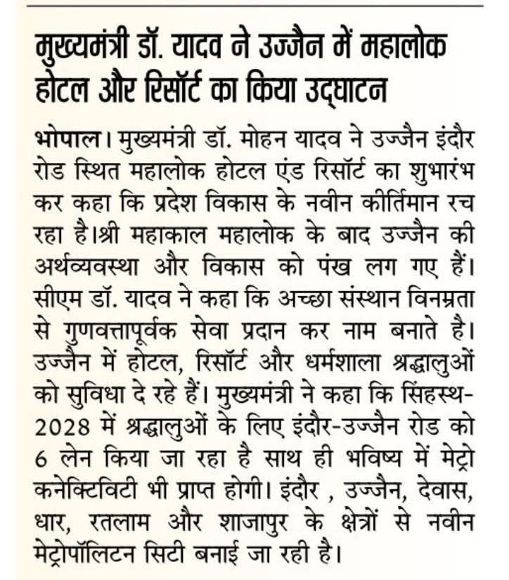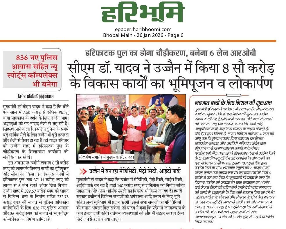 सीएम डाॅ. मोहन यादव ने उज्जैन में किया 800 करोड़ के विकास कार्यों का लोकार्पण एवं भूमिपूजन