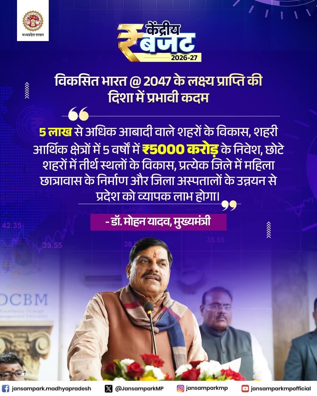 Dr Mohan Yadav CM Madhya Pradesh Department of Finance, Madhya Pradesh #ViksitBharatBudget #UnionBudget2026 #Budget2026 #JansamparkMP