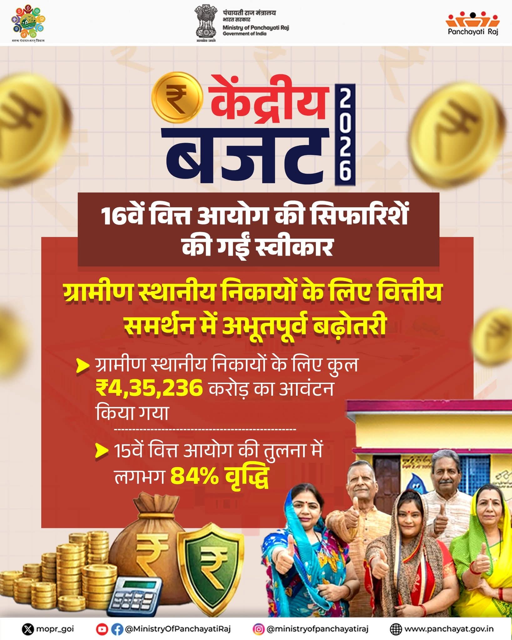 #ViksitBharatBudget | केंद्रीय बजट 2026–27 में सोलहवें वित्त आयोग के अनुदान: पंचायती राज संस्थाओं के लिए ऐतिहासिक वृद्धि