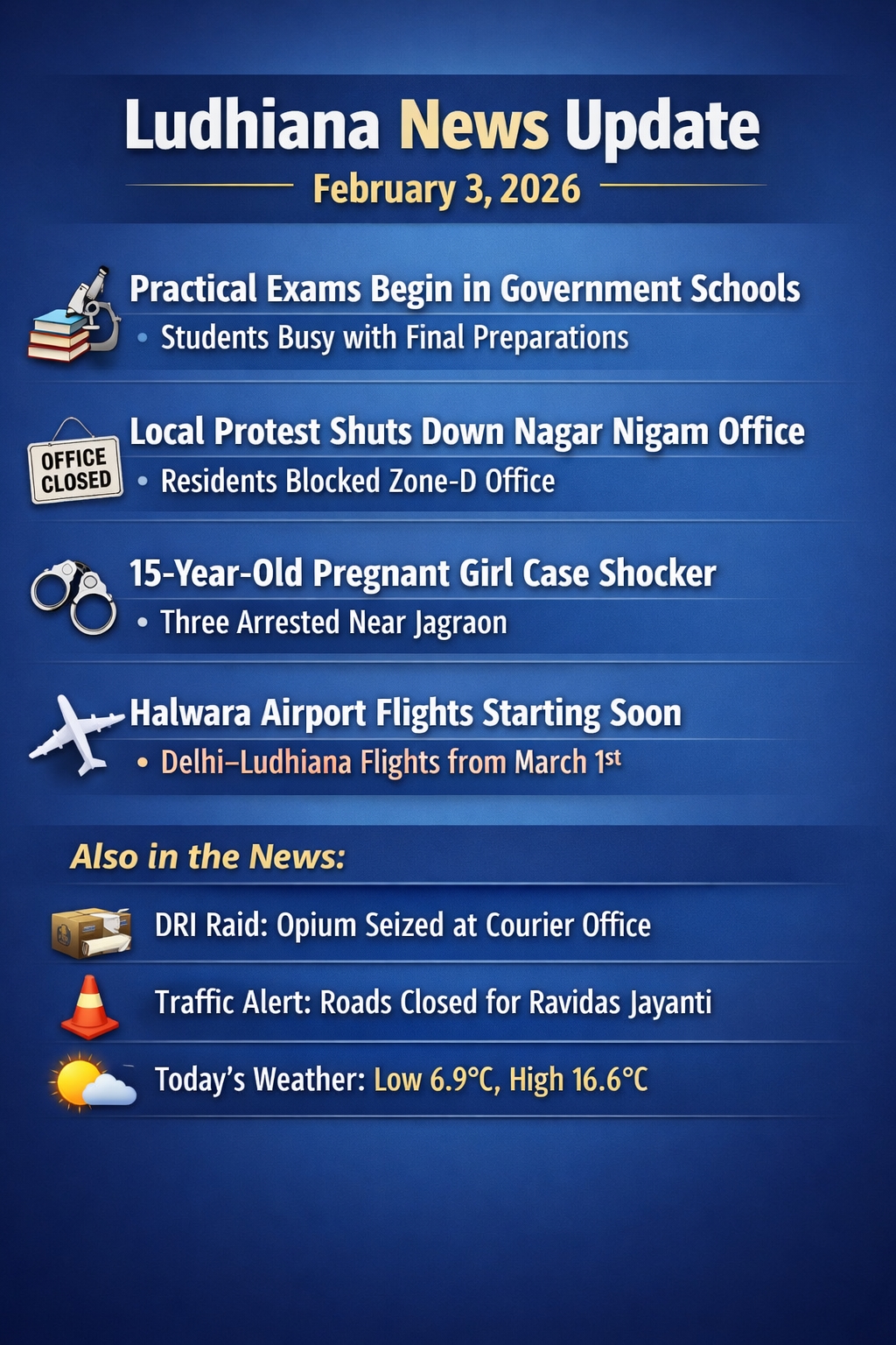 ਇਹ ਹਨ ਅੱਜ (3 ਫਰਵਰੀ 2026) ਦੀਆਂ ਲੁਧਿਆਣਾ ਤੋਂ ਤਾਜ਼ਾ ਅਤੇ ਵੇਰਵਿਆਂ ਸਮੇਤ ਖ਼ਬਰਾਂ 👇