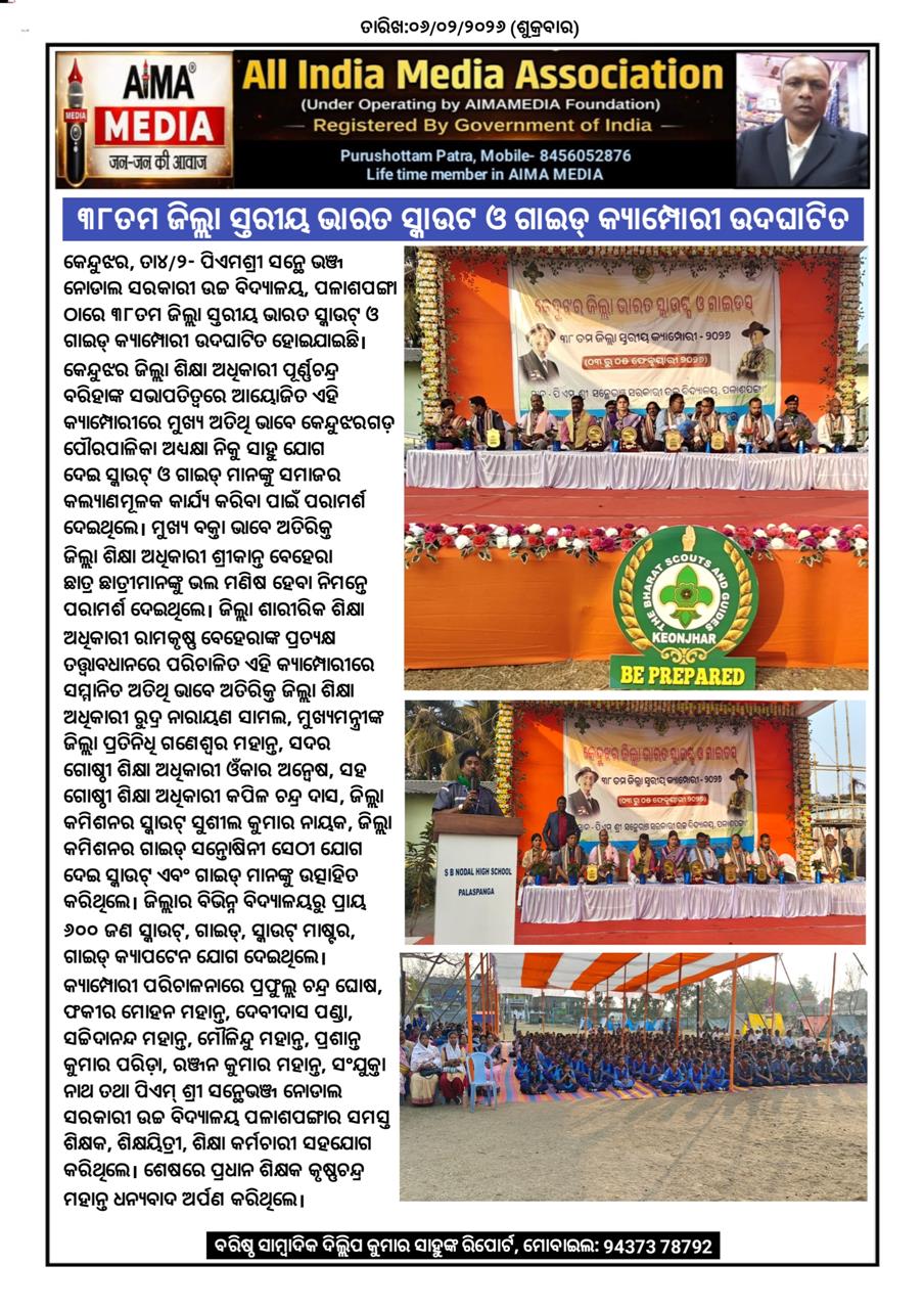 ୩୮ତମ ଜିଲ୍ଲା ସ୍ତରୀୟ ଭାରତ ସ୍କାଉଟ ଓ ଗାଇଡ୍ କ୍ୟାମ୍ପୋରୀ ଉଦଘାଟିତ।