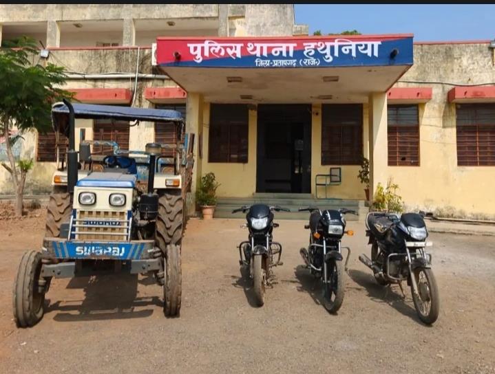 प्रतापगढ़ पुलिस ने एक अंतरराज्यीय चोर गिरोह का पर्दाफाश किया है। हथुनिया थाना पुलिस ने इस कार्रवाई में दो आरोपियों को गिरफ्तार कर चोरी की एक ट्रैक्टर-ट्रॉली और तीन मोटरसाइकिलें बरामद की हैं।