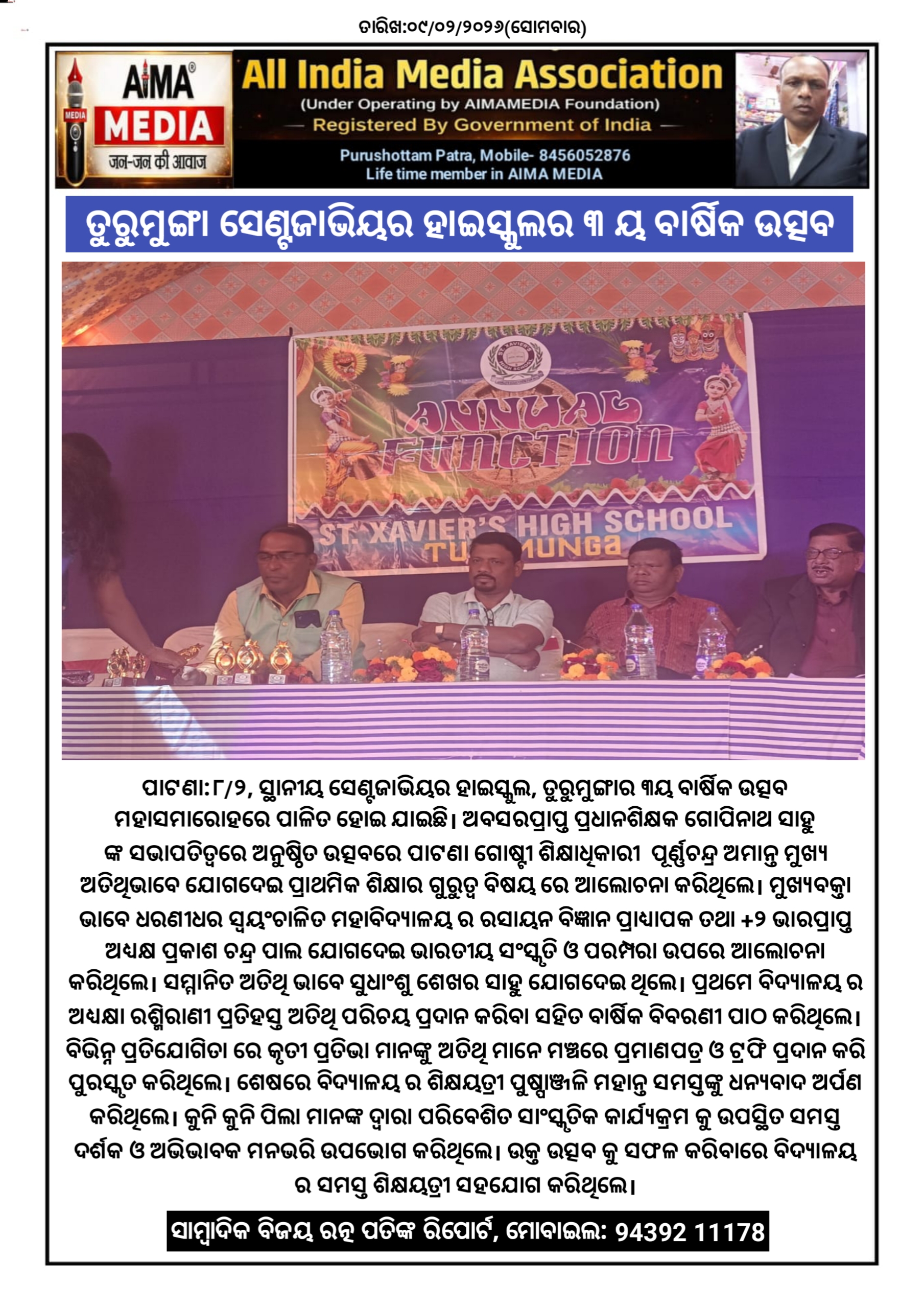 ତୁରୁମୁଙ୍ଗା ସେଣ୍ଟଜାଭିୟର ହାଇସ୍କୁଲର ୩ ୟ ବାର୍ଷିକ ଉତ୍ସବ।