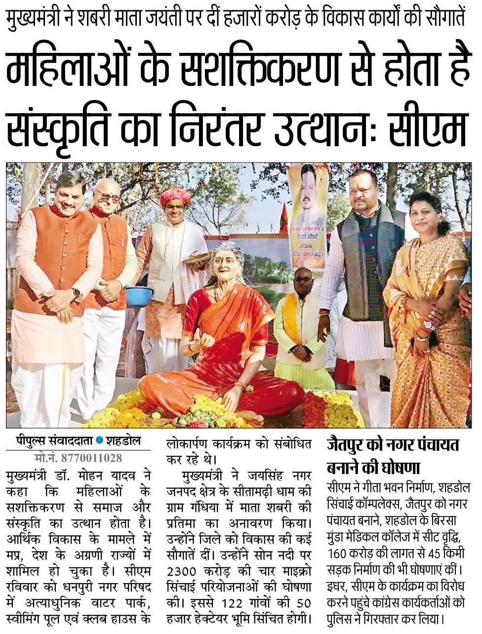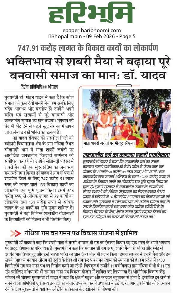 भक्ति भाव से शबरी मैया ने पूरे वनवासी समाज का बढ़ाया मान: मुख्यमंत्री डॉ मोहन यादव