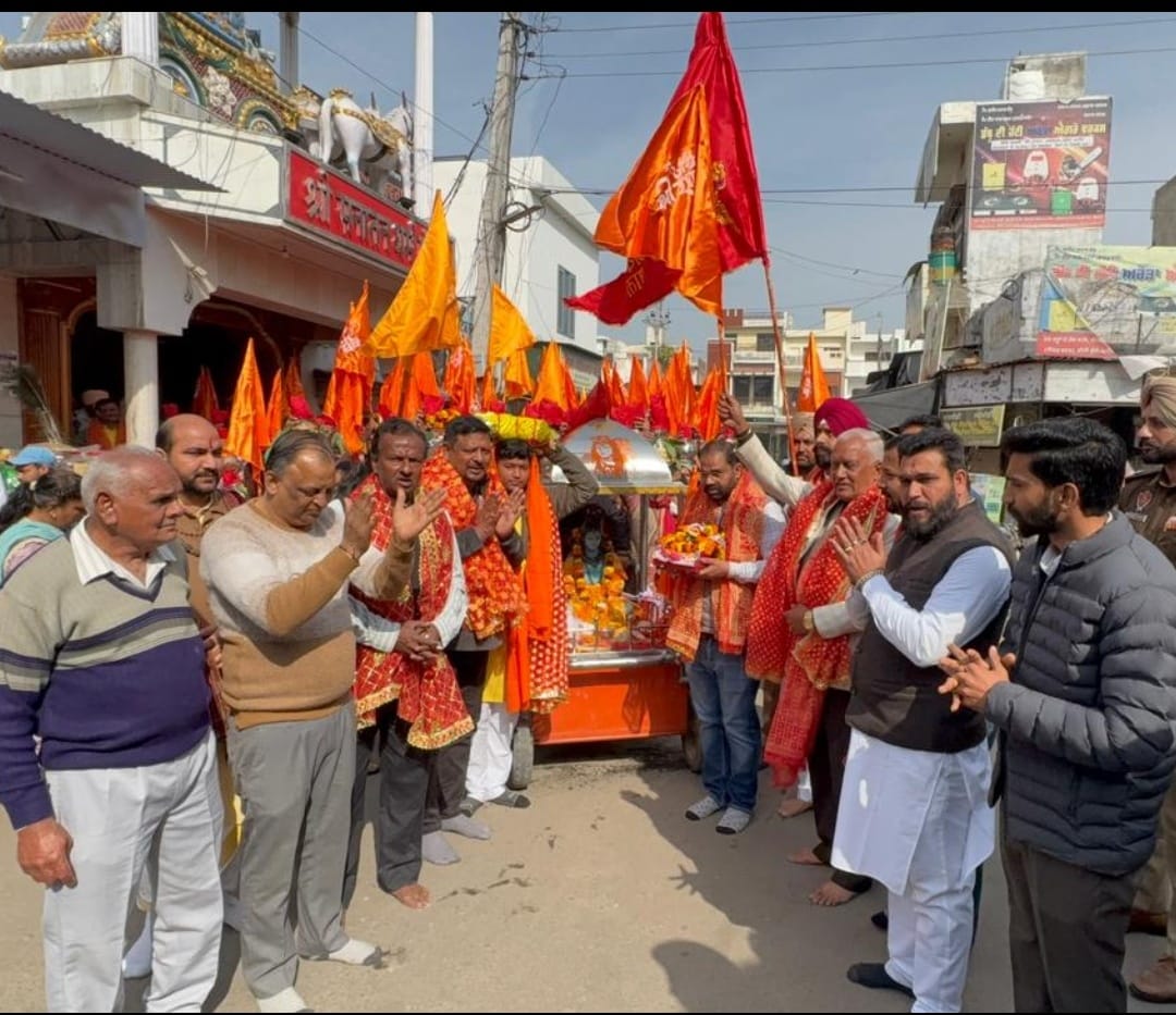शिवरात्रि के मौके पर प्राचीन श्री शिव दुर्गा मंदिर की ओर से कलश और झंडा यात्रा को कैबिनेट मंत्री बरिंदर गोयल ने हरी झंडी दिखाकर रवाना किया।