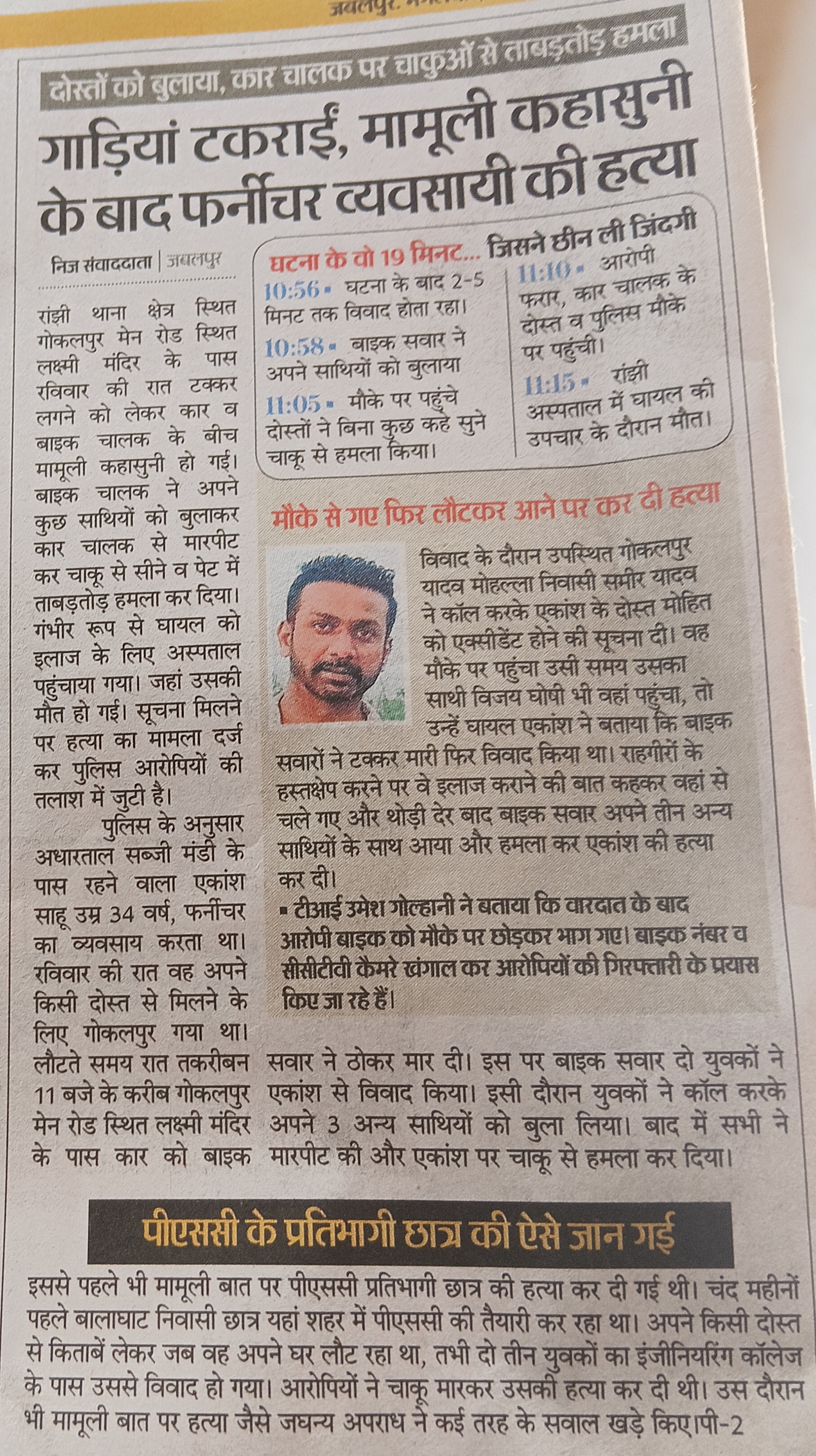 गाड़ियों टकराई मामूली कहा सुनी के बाद फर्नीचर व्यापारी की हत्या