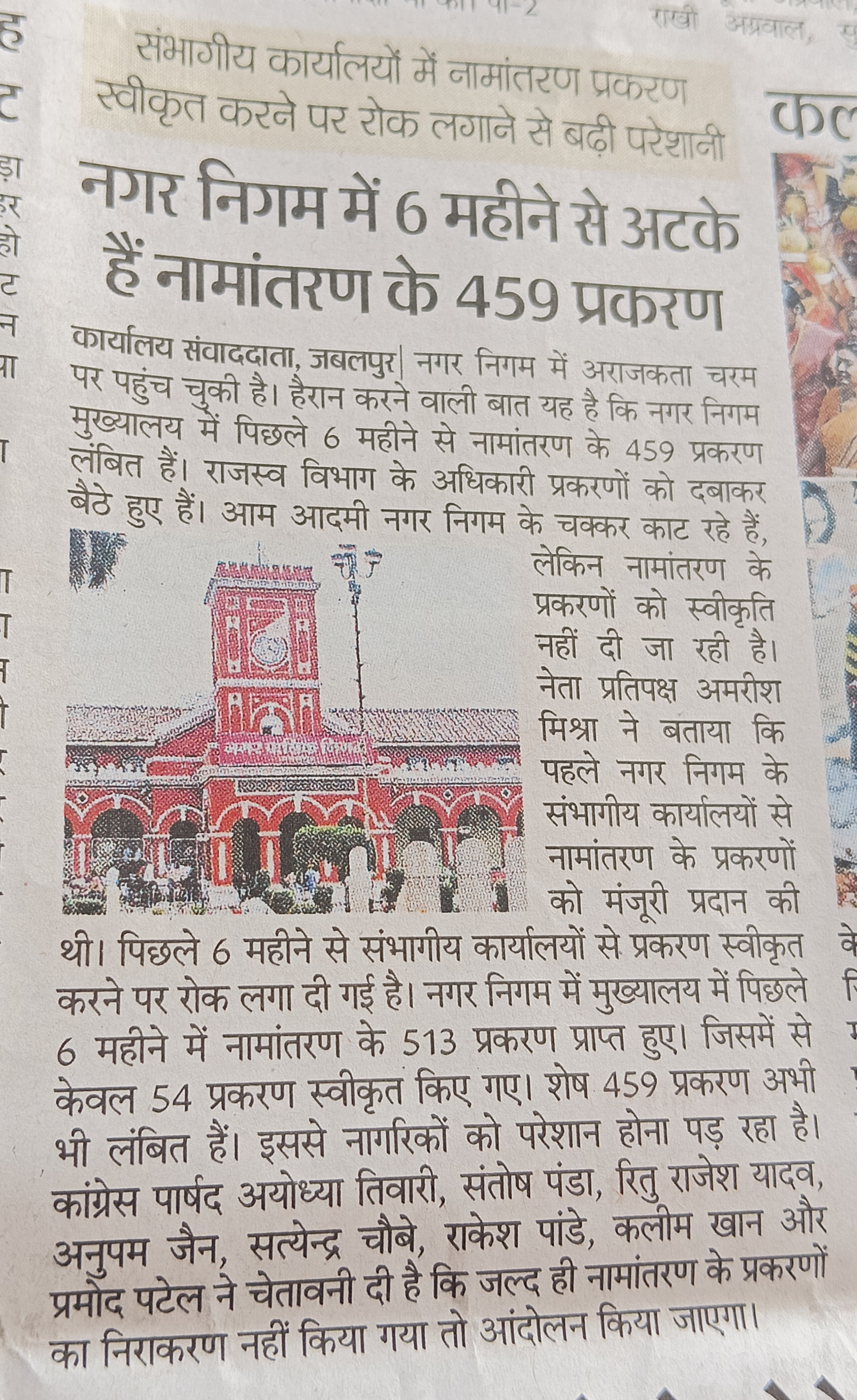 नगर निगम में 6 महीने से फाइल अटके हैं नामांतरण के 459प्रकरण