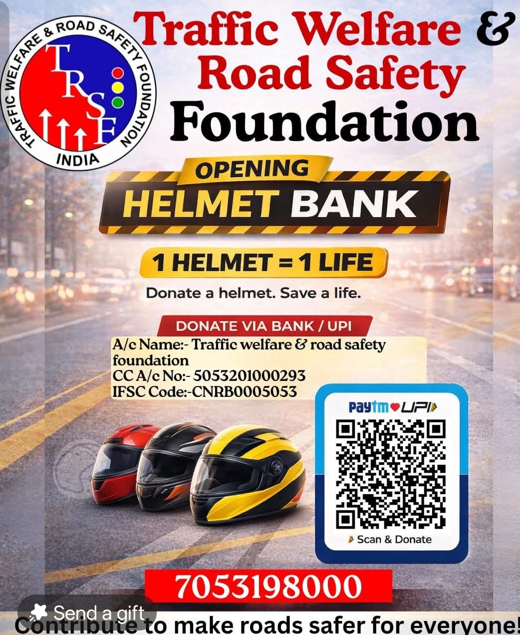 👉 Kindly contribute the amount equivalent to the number of helmets you wish to donate.