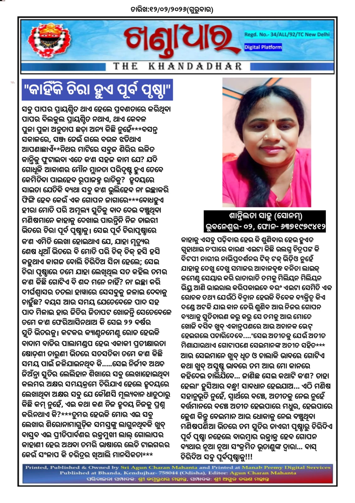 "କାହିଁକି ଚିରା ହୁଏ ପୂର୍ବ ପୃଷ୍ଠା"- ଶାନ୍ତିଲତା ସାହୁଙ୍କ ଦ୍ବାରା ବିଶେଷ ଉପସ୍ଥାପନା।