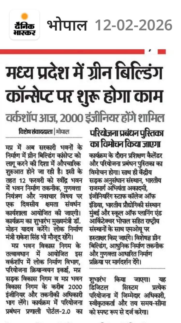 मध्यप्रदेश में ग्रीन बिल्डिंग कॉन्सेप्ट पर शुरू होगा काम