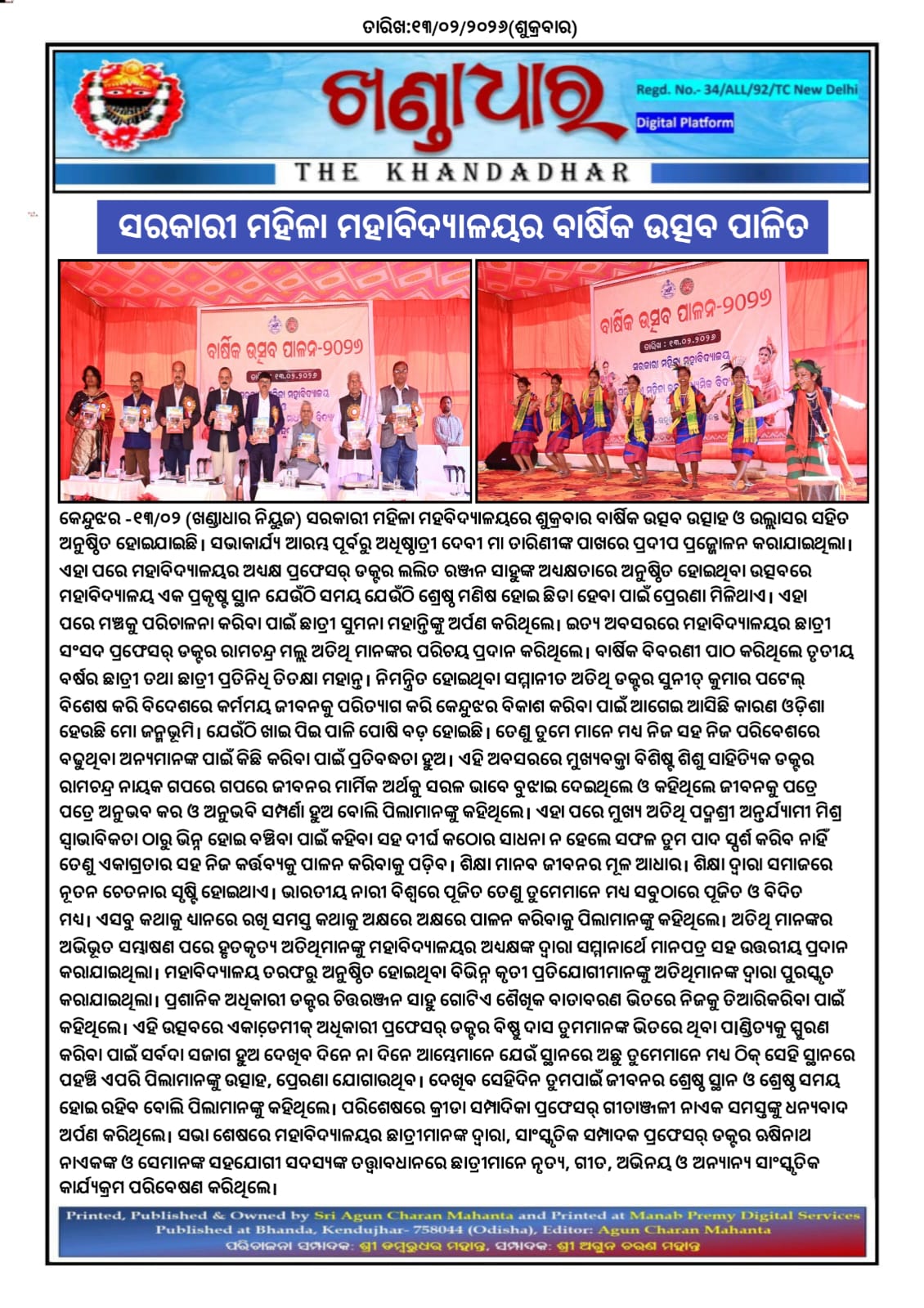 ସରକାରୀ ମହିଳା ମହାବିଦ୍ୟାଳୟର ବାର୍ଷିକ ଉତ୍ସବ ପାଳିତ।