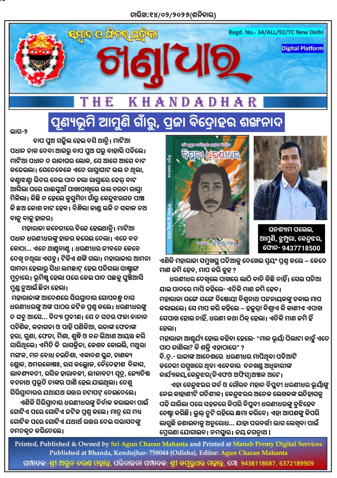 ପୂଣ୍ୟଭୂମି‌‌‌‌‌ ଆମୁଣି ଗାଁରୁ, ପ୍ରଜା ବିଦ୍ରୋହର ଶଙ୍ଖନାଦ। ଘନଶ୍ୟାମ ପଲେଇ ଙ୍କ ଦ୍ଵାରା ବିଶେଷ ଉପସ୍ଥାପନା।