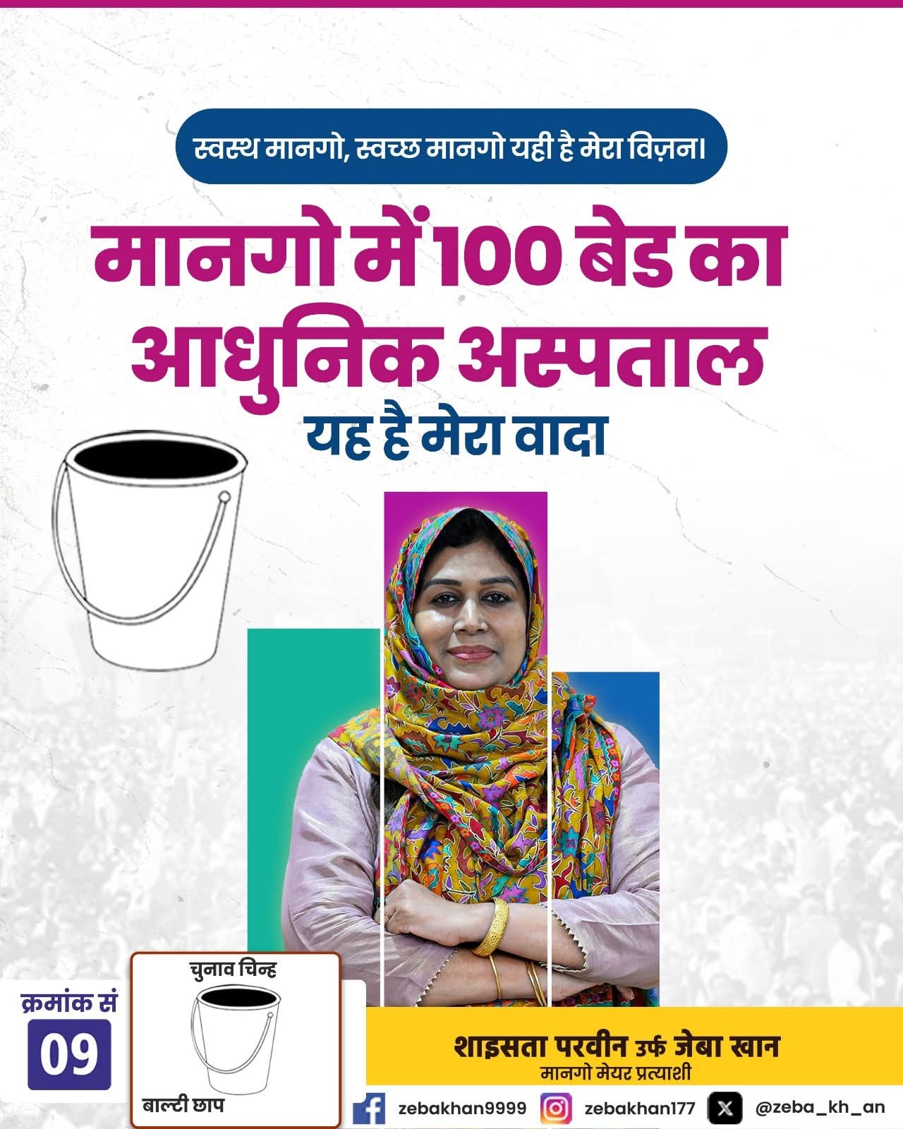 VOTE FOR ZEBA KHAN BUTTON NO.9 FOR MAYOR ELECTION AT JAMSEDHPUR