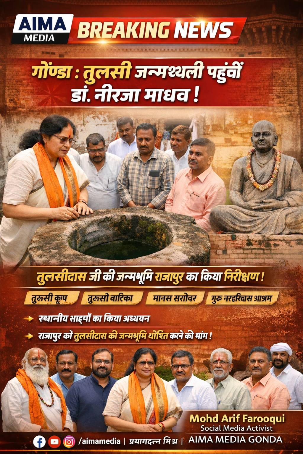 गोण्डा (उत्तर प्रदेश) — देश की वरिष्ठ साहित्यकार एवं विदुषी डॉ. नीरजा माधव बुधवार को गोण्डा जनपद परसपुर नगर पंचायत स्थित गोस्वामी तुलसीदास जी की जन्मस्थली राजापुर पहुँचीं। इस दौरान उन्होंने तुलसीदास जी की जन्मभूमि से जुड़े ऐतिहासिक व सांस्कृतिक स्थलों का गहन निरीक्षण किया।