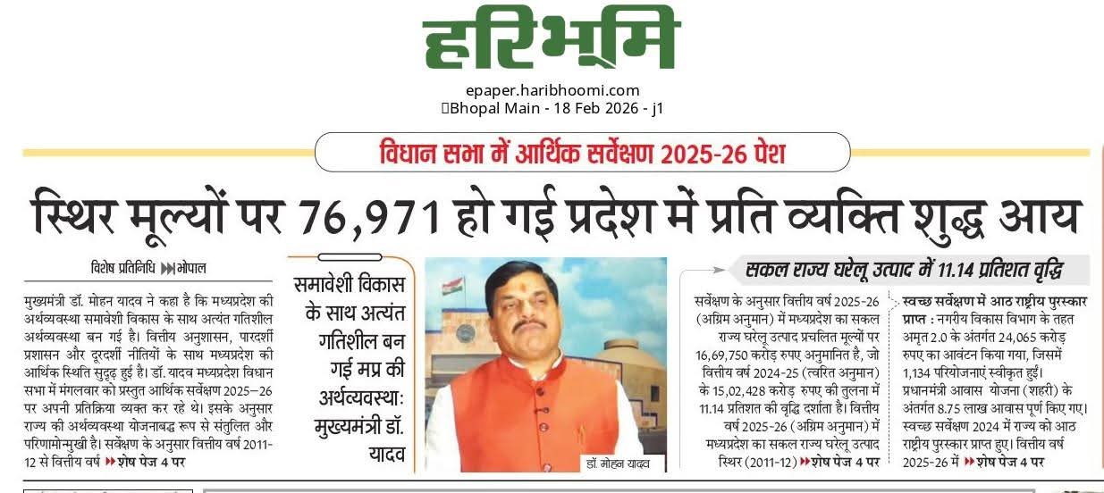 समावेशी विकास के साथ अत्यंत गतिशील बन गई मध्यप्रदेश की अर्थव्यवस्था : मुख्यमंत्री डॉ. मोहन यादव
