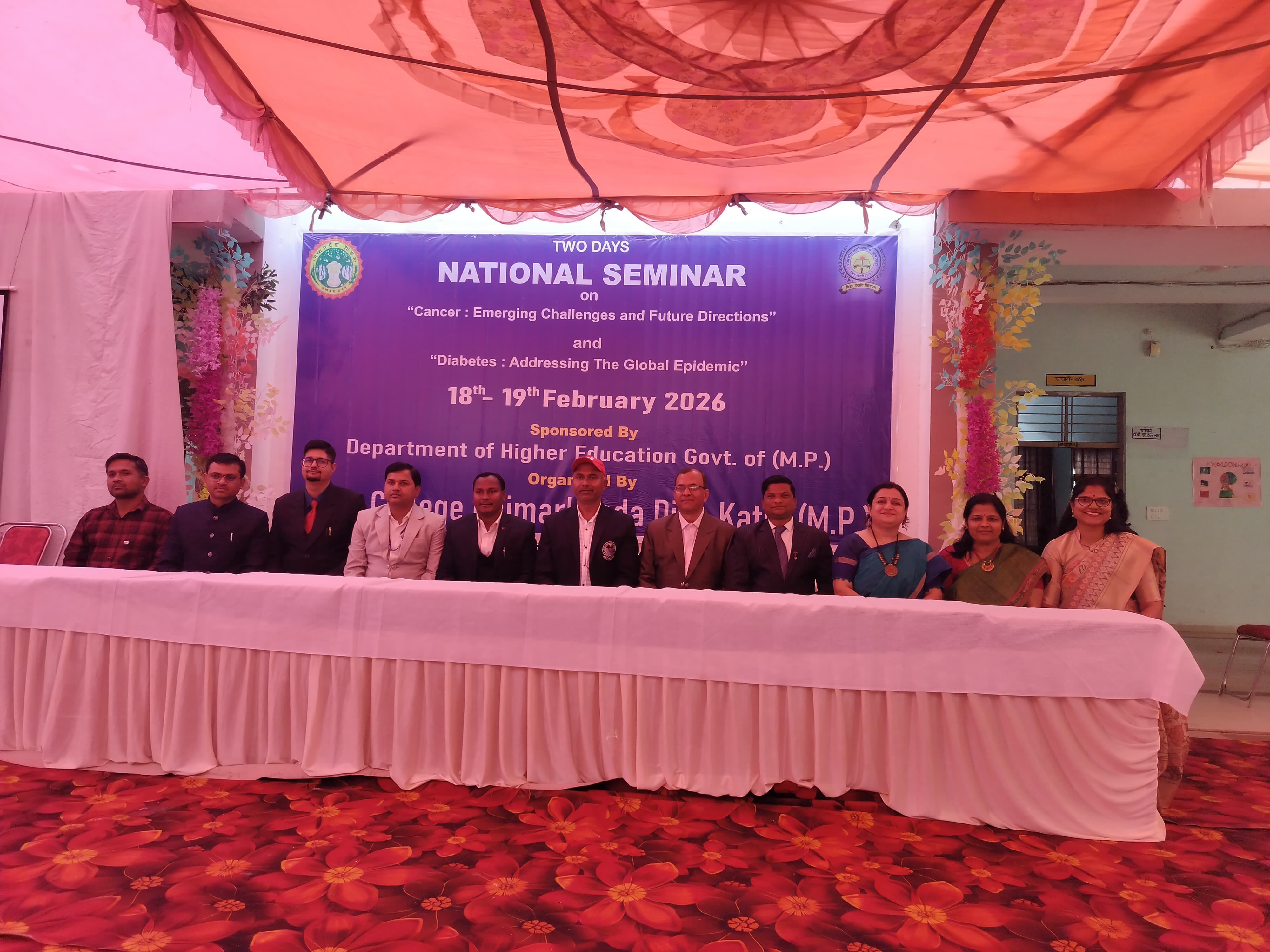 "कैंसर अनुसंधान में जीनोमिक्स, एपिजेनेटिक्स और बायोलॉजी प्रणाली का एकीकरण" विषय पर प्रभावी व्याख्यान प्रस्तुत किया। इसके उपरांत दोनों दिवस के व्याख्यानों का सारांश तकनीकी सत्रों के अध्यक्ष डॉ. जयप्रकाश अवस्थी सहायक प्राध्यापक शासकीय महाविद्यालय उमरियापान जिला कटनी ने प्रस्तुत किया। इसके पश्चात महाविद्यालय के विद्यार्थियों ने कैंसर और मधुमेह विषय पर पोस्टर निर्माण किये जिनकी प्रदर्शनी लगाई गई,जिसका अवलोकन वक्ताओं एवं अतिथियों ने किया और प्रथम पुरस्कार अभिषेक कुमार बीएससी चतुर्थ वर्ष, द्वितीय पुरस्कार आशिका बीएससी चतुर्थ वर्ष, तृतीय पुरस्कार प्रिया चक्रवर्ती बीएससी तृतीय वर्ष एवं सांत्वना पुरस्कार संजना बाढ़ई, रेशु बर्मन, प्रियंका बी.ए. द्वितीय वर्ष को प्रदान किया। इस कार्यक्रम को सफल बनाने में शोध संगोष्ठी की संयोजिका डॉ. मनीषा व्यास, सह-संयोजिका श्रीमती स्मिता परसाई, आयोजन सचिव डॉ. सचिन कोष्टा एवं डॉ. राजाराम सिंह, डॉ.हर्षित द्विवेदी, डॉ. मनोज कुमार गुप्ता, श्री युवराज तिवारी, श्री जवाहरलाल चौधरी, श्री मनीष कुमार, श्री जितेंद्र कुमार, अभिषेक कुमार, दीनदयाल चक्रवर्ती, लक्ष्मी पटेल, भारती लोधी, काजल शर्मा, श्वेता शर्मा, रीना पटेल, छाया उपाध्याय, शिखा त्रिपाठी, शालिनी पटेल, हेमलता चक्रवर्ती, निशा तिवारी आदि ने विशेष सहयोग प्रदान किया।