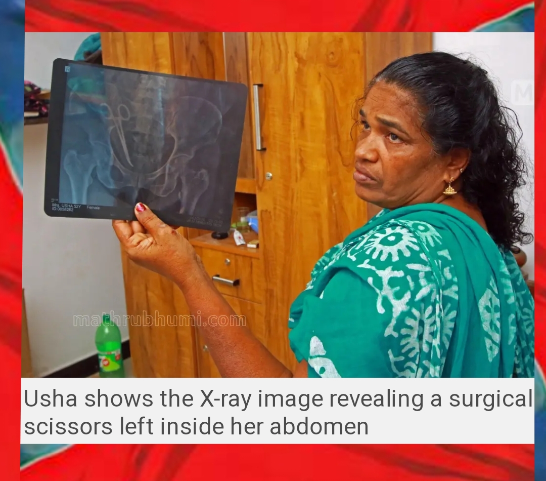 A woman named Usha Joseph from Kerala has been suffering from abdominal pain for five years. However, it was found that she had surgical scissors in her stomach. She underwent surgery at the Government Medical College in Alappuzha in 2021. During the surgery, doctors left forceps in her abdomen. The surgery was done as part of the treatment for a uterine disease. However, during that time, they left scissors in her abdomen. Due to this, she went to the hospital again several times. But the government doctors did not take care of her. Due to this, the woman went to a private hospital. Forceps were found in the abdominal X-ray. Currently, this incident has sparked a huge controversy in Kerala.