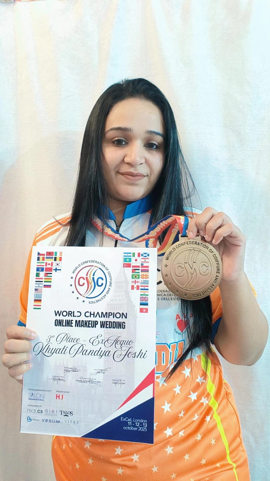ओनलाईन आयोजित इन्टरनेशनल कम्पीटीशन में 24 देश के 500 प्रतियोगीयोंने हिस्सा लिया था जिसमें ब्राइडल मेकअप केटेगरीमें ख्याति विजय जोशीने तीसरा स्थान हासिल कर शहेर को गौरवान्वित किया है