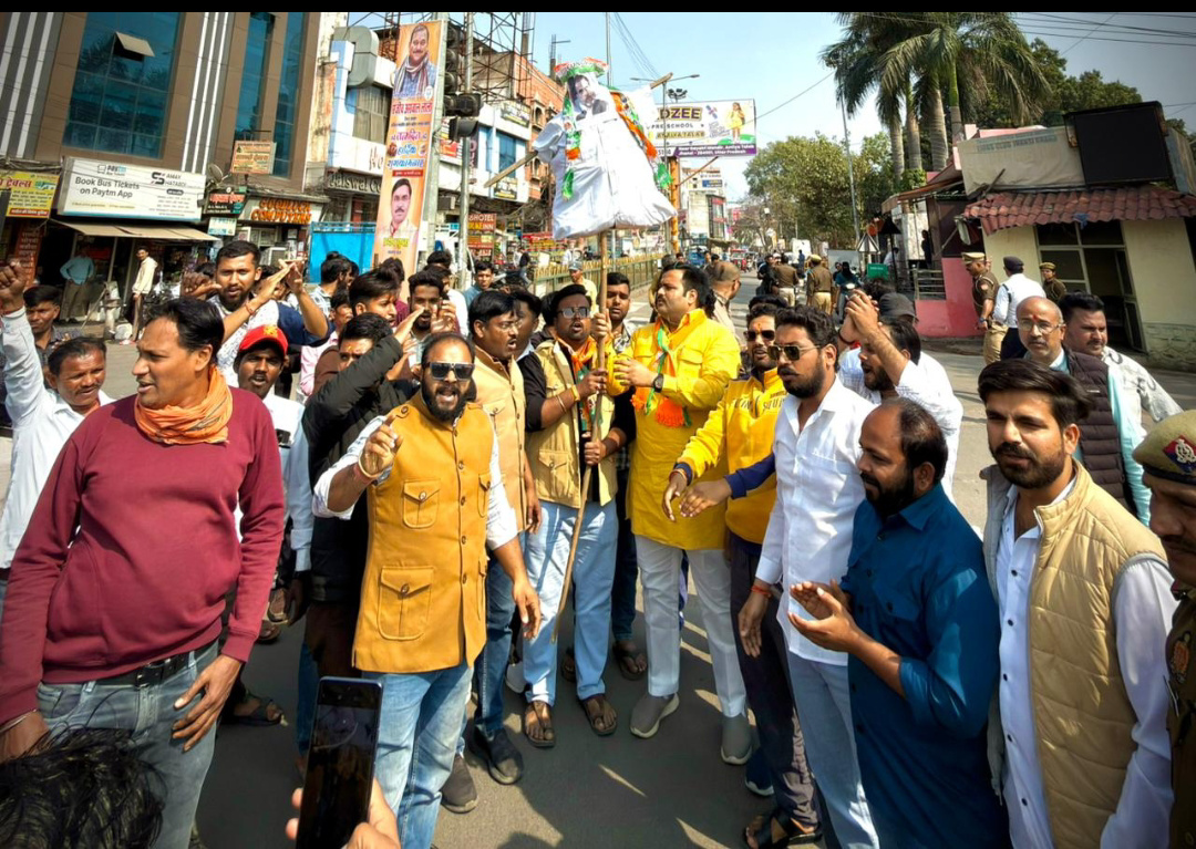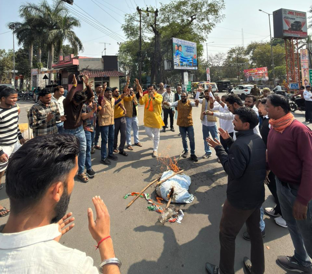 झाँसी--​AI-Summit" में कांग्रेस की बदसलूकी लोकतंत्र पर प्रहार, भाजपा युवा मोर्चा कार्यकर्ताओं ने इलाइट चौराहा झाँसी पर प्रदर्शन कर जताया विरोध |हाल ही में नई दिल्ली में आयोजित ‘AI-Summit' के दौरान कांग्रेस पार्टी के कार्यकर्ताओं और पदाधिकारियों द्वारा की गई अभद्र टिप्पणी और बदसलूकी के विरोध में आज भारतीय जनता पार्टी युवा मोर्चा के कार्यकर्ताओं ने आक्रोश व्यक्त कर राहुल गाँधी का पुतला देहेन किया । भाजपा युवा मोर्चा कार्यकर्ताओं ने इस घटना को लोकतंत्र के चौथे स्तंभ और सार्वजनिक शिष्टाचार का अपमान बताते हुए जिलाधिकारी के माध्यम से राष्ट्रपति/महामहिम को ज्ञापन सौंपा।​इस अवसर पर उपस्थित ई अमित सिंह जादौन ने कहा कि "मोहब्बत की दुकान" चलाने का दावा करने वाले राहुल गांधी की पार्टी के असल चेहरे से नकाब उतर गया है। एक प्रतिष्ठित मंच पर पत्रकारों और अतिथियों के साथ जिस तरह की धक्का-मुक्की और अमर्यादित भाषा का प्रयोग किया गया, वह कांग्रेस की हताशा को दर्शाता है।