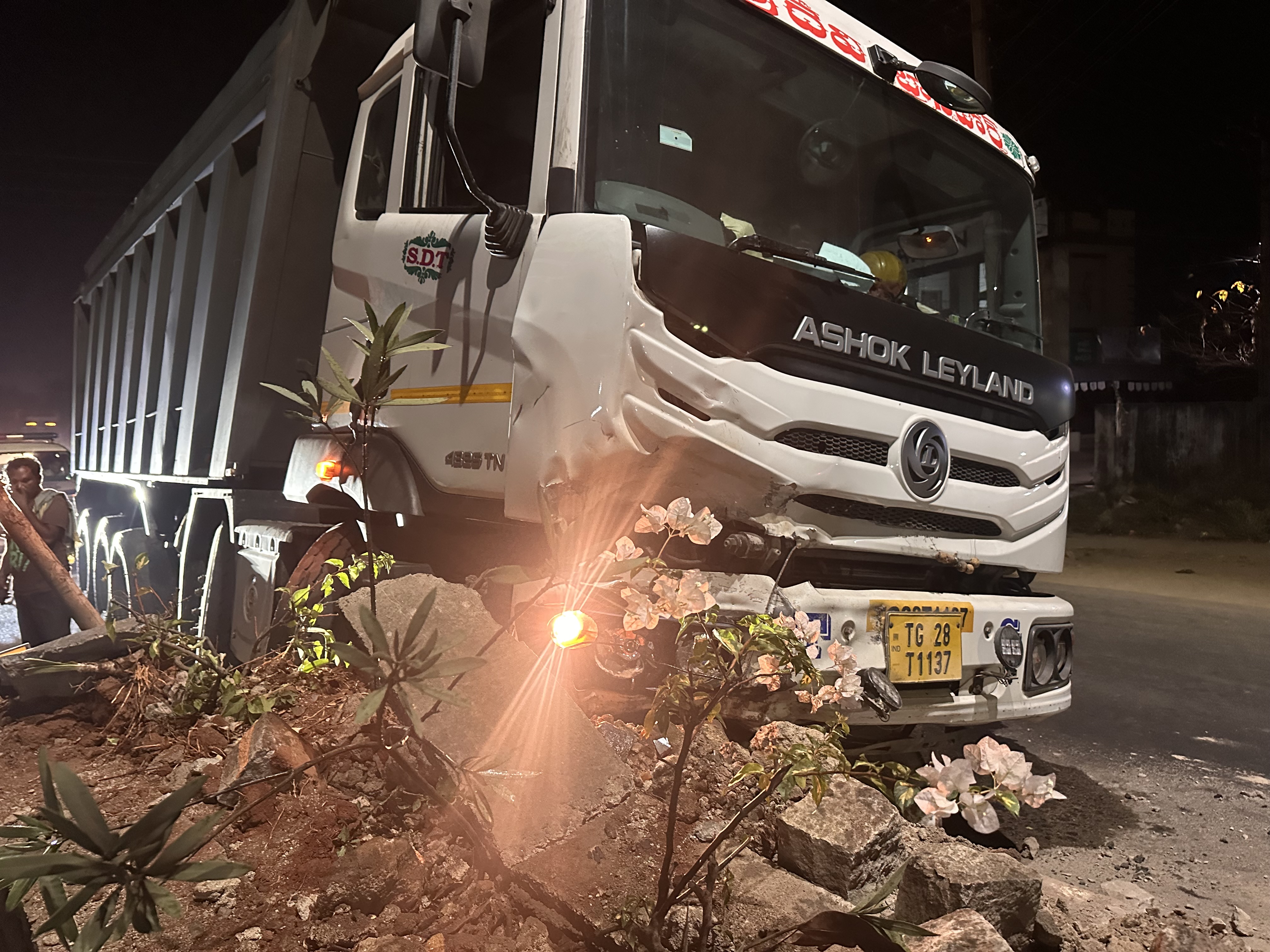 కొత్తగూడెం ఫిబ్రవరి 22: సత్తుపల్లి నుండి బొగ్గు లోడూతో వస్తు సి ఎస్ పి వద్ద అన్లోడ్ చేయాల్సిన బొగ్గు లోడు టిప్పర్ లారీ SDT కంపెనీ TG28 T 1137 అక్కడ ఎక్కడ ఆగకుండా మద్యం మత్తులో లారీ డ్రైవర్ 14 నెంబర్ ఫారెస్ట్ చెక్ పోస్ట్ వద్ద సుమారుగా 12:20 AM యూటర్న్ మున్సిపల్ డివైడర్ను ఢీకొని యాక్సిడెంట్ గురైంది.. ఎవరికి ఎటువంటి అపాయం జరగలేదు సంఘటన స్థలానికి ఐదు నిమిషాల లోపే చేరుకున్న టూ టౌన్ ఎస్సై కిషోర్..