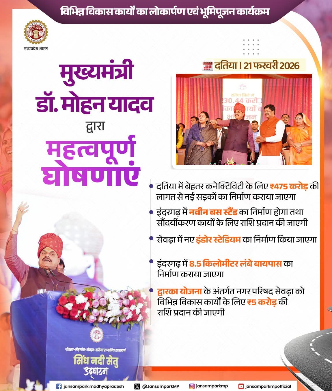 Dr Mohan Yadav CM Madhya Pradesh Public Works Department, Madhya Pradesh Department of Urban Development & Housing MP Department of Sports & Youth Welfare, Madhya Pradesh #MadhyaPradesh #Datia #JansamparkMP