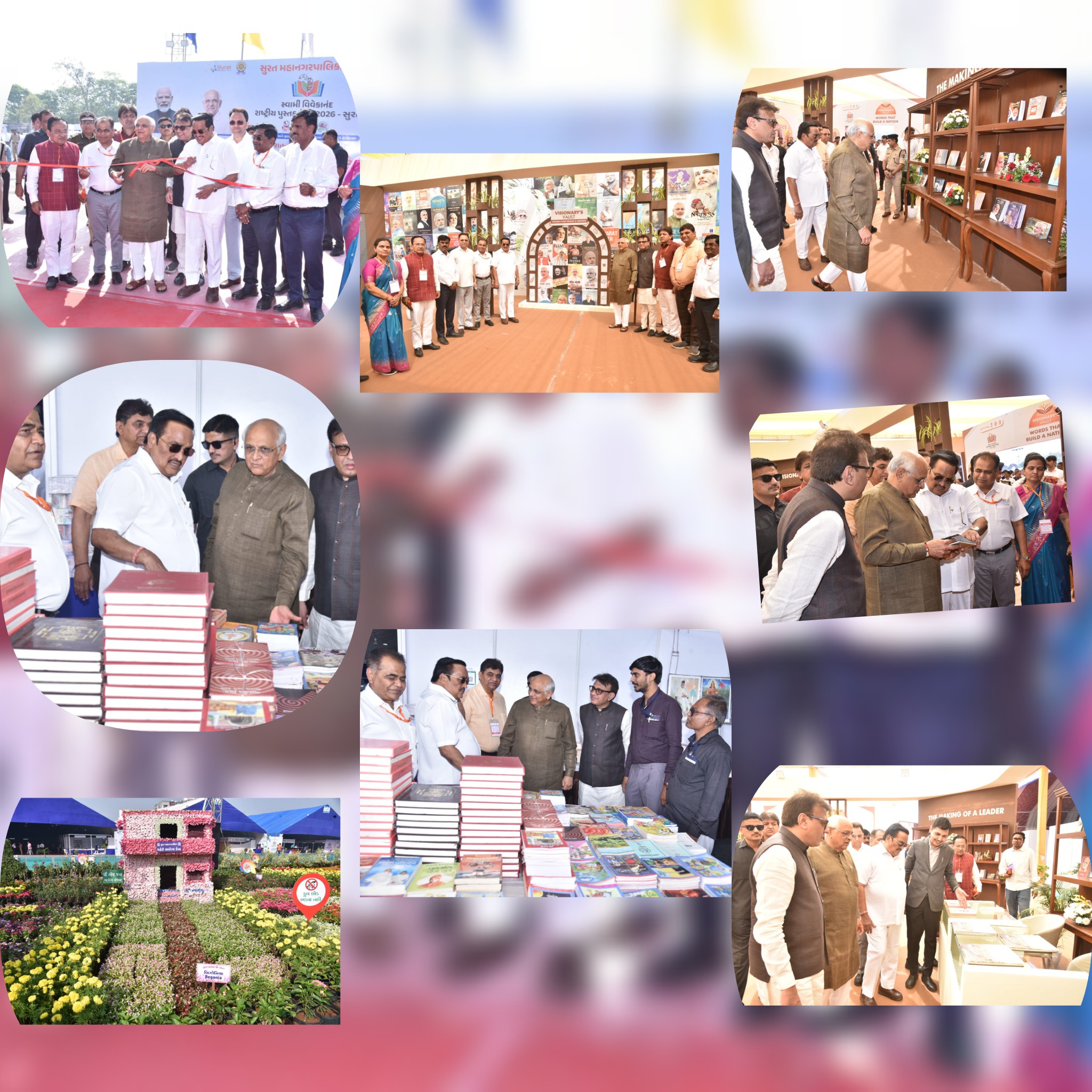 સુરત મહાનગરપાલિકા ઘ્વારા ર૦મા સ્વામી વિવેકાનંદ રાષ્ટ્રીય પુસ્તક મેળો ર૦ર૬-સુરત ૧૮મા બાગાયત મેળો અને ફલાવર શો, ૧૦મા શિલ્પગ્રામ મેળો તથા ફૂડ ફેસ્ટીવલનું તા.૨૨/૦૨/૨૦૨૬ થી ૦૧/૦૩/૨૦૨૬ ( ૮ -દિવસ) સુધી વીર નર્મદ દક્ષિણ ગુજરાત યુનિવર્સિટી ગ્રાઉન્ડ ,ઉધના મગદલ્લા રોડ,સુરત ખાતે આયોજન કરવામાં આવેલ છે. જેનું ઉદઘાટન આજરોજ ભૂપેન્દ્રભાઈ પટેલ મુખ્યમંત્રી, ગુજરાતના વરદ્દહસ્તે સંપન્ન કરવામાં આવેલ. સદર કાર્યક્રમમાં ભૂપેન્દ્રભાઈ પટેલ મુખ્યમંત્રી, ગુજરાત ઘ્વારા સ્વામી વિવેકાનંદ રાષ્ટ્રીય પુસ્તક મેળોના સ્ટોલની મુલાકાત લીધી તથા વડાપ્રધાન નરેન્દ્ર મોદીના પુસ્તકો પર આધારિત થીમ પેવેલિયન - Visionary’s Vault,, Words That Build a Nationની પ્રદર્શની નિહાળી હતી. ત્યારબાદ મુખ્યમંત્રી ભૂપેન્દ્રભાઇ પટેલે ઉપસ્થિત મહાનુભાવો અને જાહેર જનતા સાથે વડાપ્રધાન નરેન્દ્ર મોદીનો ''મન કી બાત'' કાર્યક્રમ સાંભળ્યો હતો.