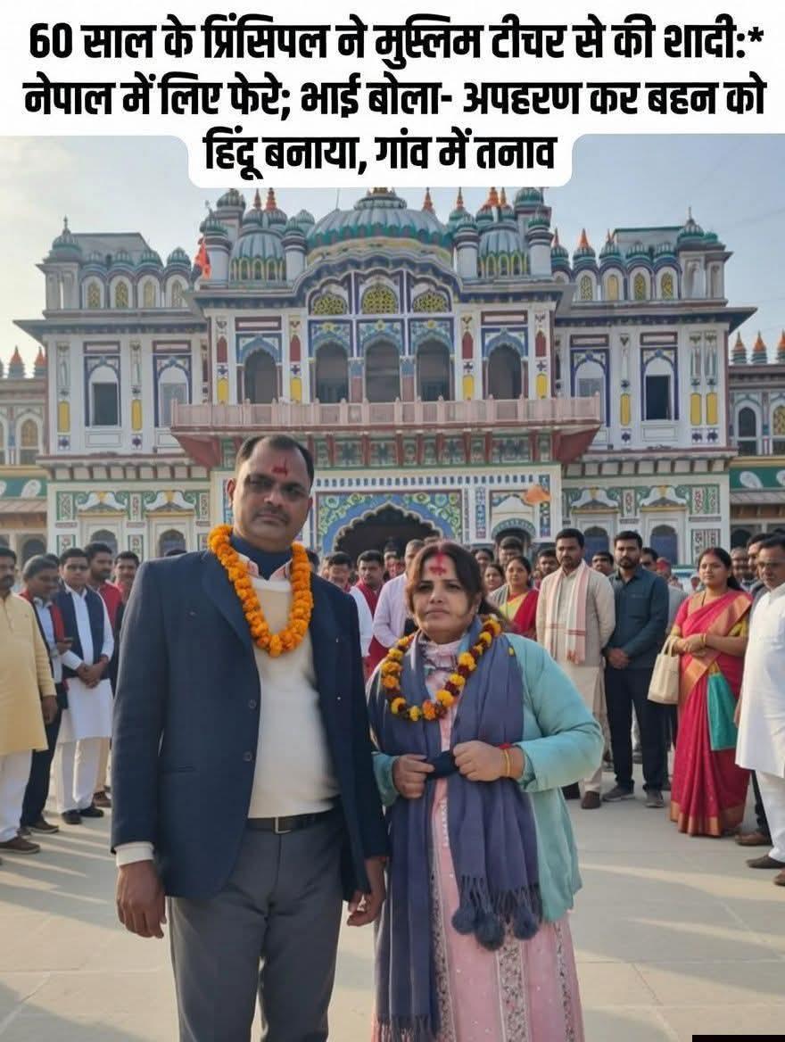 मुजफ्फरपुर में रिटायरमेंट के कगार पर चल रहे स्कूल प्रिंसिपल और 28 साल की महिला टीचर ने नेपाल में एक दूसरे से शादी रचा ली जिसके बाद विवाद खड़ा हो गया है. युवती के भाई ने अपहरण और जबरन विवाह का आरोप लगाया है, जबकि शिक्षिका ने वीडियो जारी कर इसे अपनी मर्जी बताया है. मामले में एफआईआर दर्ज कर पुलिस जांच कर रही है.