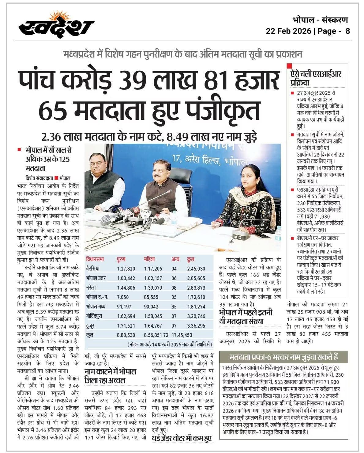 मध्यप्रदेश में विशेष गहन पुनरीक्षण के बाद अंतिम मतदाता सूची का प्रकाशन