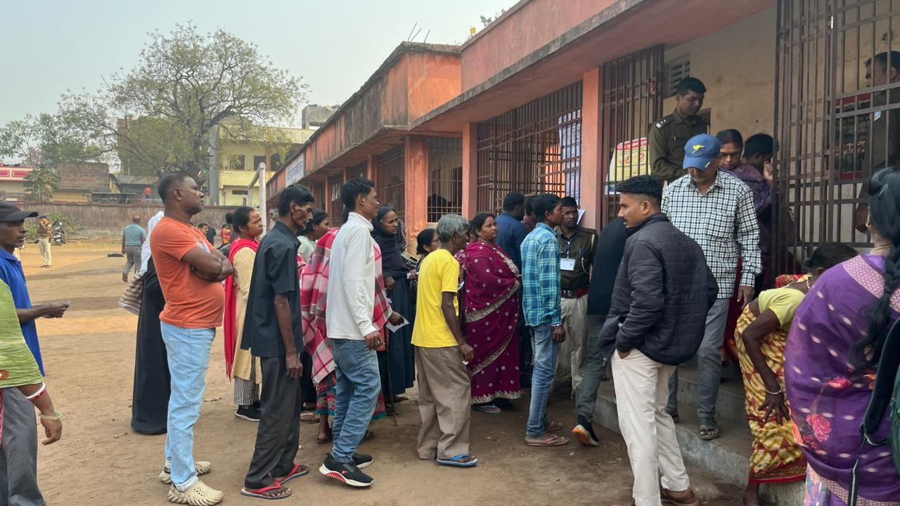 рдорд╛рдирдЧреЛ рдХреЗ рдЙрд▓реАрдбреАрд╣ рд╕реНрдерд┐рдд рдЖрджрд┐рд╡рд╛рд╕реА рдЬрдирдХрд▓реНрдпрд╛рдг рд╣рд╛рдИрд╕реНрдХреВрд▓ рдорддрджрд╛рди рдХреЗрдВрджреНрд░ рдореЗрдВ рдмрдбрд╝реА рд╕рдВрдЦреНрдпрд╛ рдореЗрдВ рдорд╣рд┐рд▓рд╛ рдПрд╡рдВ рдкреБрд░реБрд╖ рдорддрджрд╛рддрд╛ рдХрддрд╛рд░рдмрджреНрдз рд╣реЛрдХрд░ рд╢рд╛рдВрддрд┐рдкреВрд░реНрдг рдврдВрдЧ рд╕реЗ рдорддрджрд╛рди рдХрд░рддреЗ рдирдЬрд░ рдЖрдПред рдпреБрд╡рд╛ рдорддрджрд╛рддрд╛рдУрдВ рдХреЗ рд╕рд╛рде-рд╕рд╛рде рдмреБрдЬреБрд░реНрдЧреЛрдВ рдореЗрдВ рднреА рдорддрджрд╛рди рдХреЛ рд▓реЗрдХрд░ рдЦрд╛рд╕ рдЙрддреНрд╕рд╛рд╣ рджреЗрдЦрдиреЗ рдХреЛ рдорд┐рд▓рд╛ред