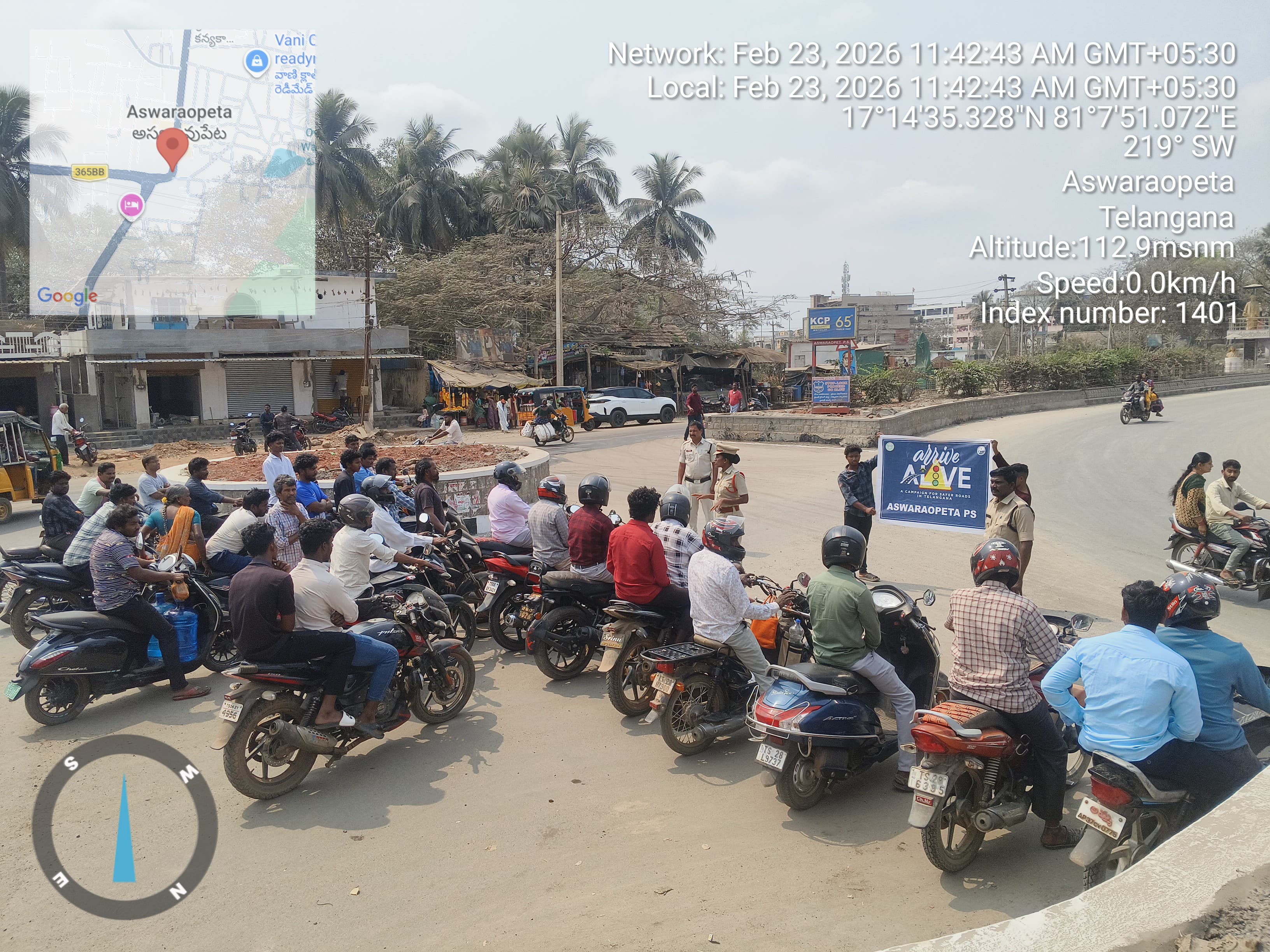 భద్రాద్రి కొత్తగూడెం జిల్లా అశ్వారావుపేట మున్సిపాలిటీలో రహదారి భద్రతకు ప్రాధాన్యత ఇస్తూ పోలీసు శాఖ ఆధ్వర్యంలో Arrive Alive Phase–2 కార్యక్రమం విస్తృతంగా నిర్వహించబడింది. పెరుగుతున్న రోడ్డు ప్రమాదాలను తగ్గించడం, ముఖ్యంగా ద్విచక్ర వాహనదారుల్లో భద్రతా ప్రమాణాలపై చైతన్యం కల్పించడం లక్ష్యంగా ఈ కార్యక్రమాన్ని చేపట్టారు.