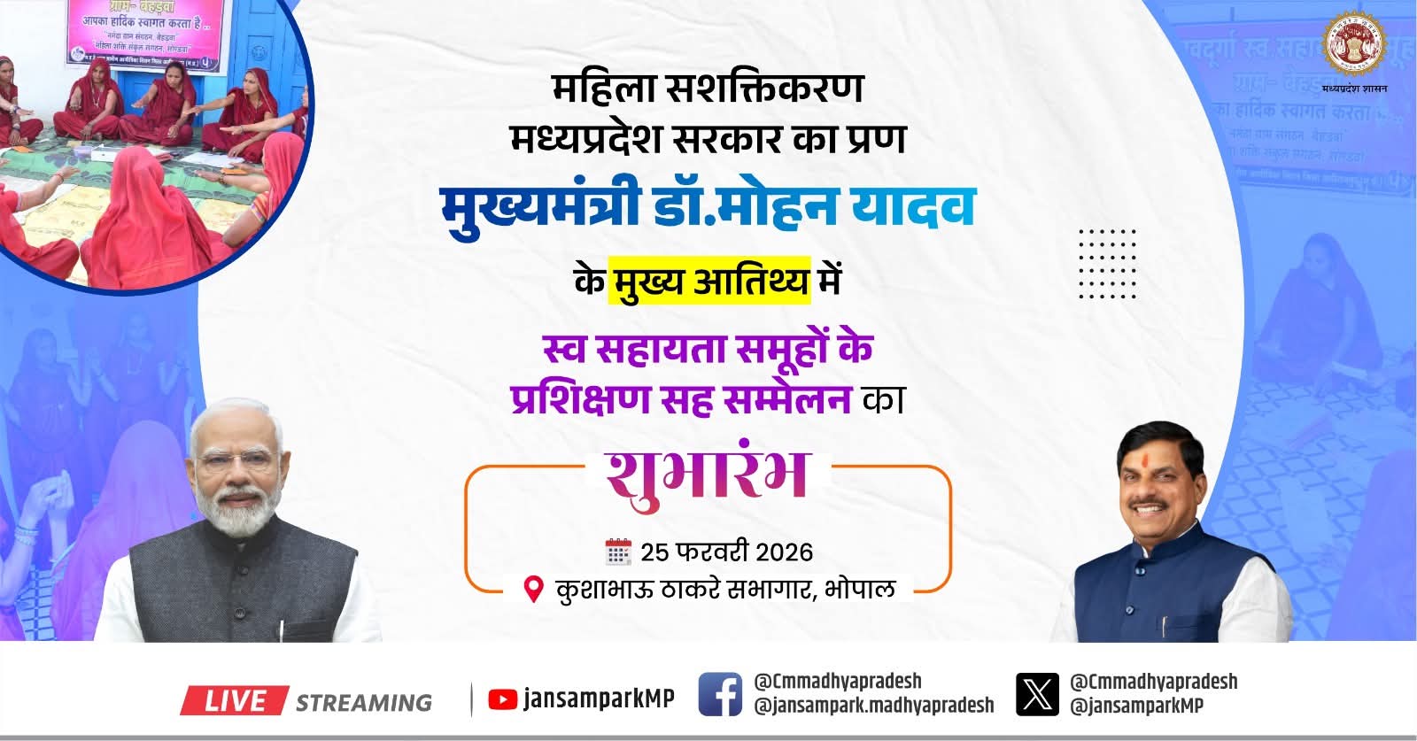 मुख्यमंत्री डॉ.मोहन यादव के मुख्य आतिथ्य में स्व सहायता समूहों के प्रशिक्षण सह सम्मेलन का शुभारंभ