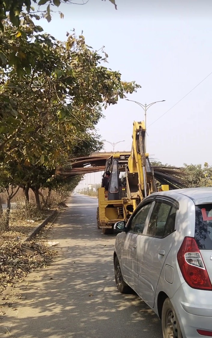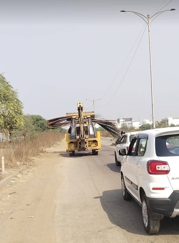 यह सुनहरा मनोरम दृश्य छत्तीसगढ़ की राजधानी रायपुर शहर के कमल विहार का है बीते दिन प्रातः 10:00 बजे जहां पर हाल ही में एक जेसीबी द्वारा लोहे के सरिया को आपत्तिजनक तरीके से ले जाते हुए देखा गया है जेसीबी पर ड्राइवर के अलावा उनके साथ उनके चार सहयोगी कर्मचारी भी शामिल थे। इनका इस तरह से लोहे का सरिया लेकर जाना सड़क पर आवा-जाहि को बाधित के अलावा खतरनाक भी हो सकता था। ऐसे जोखिमदारों पर प्रशासन को सख्त से सख़्त कार्यवाही करने की जरूरत है।