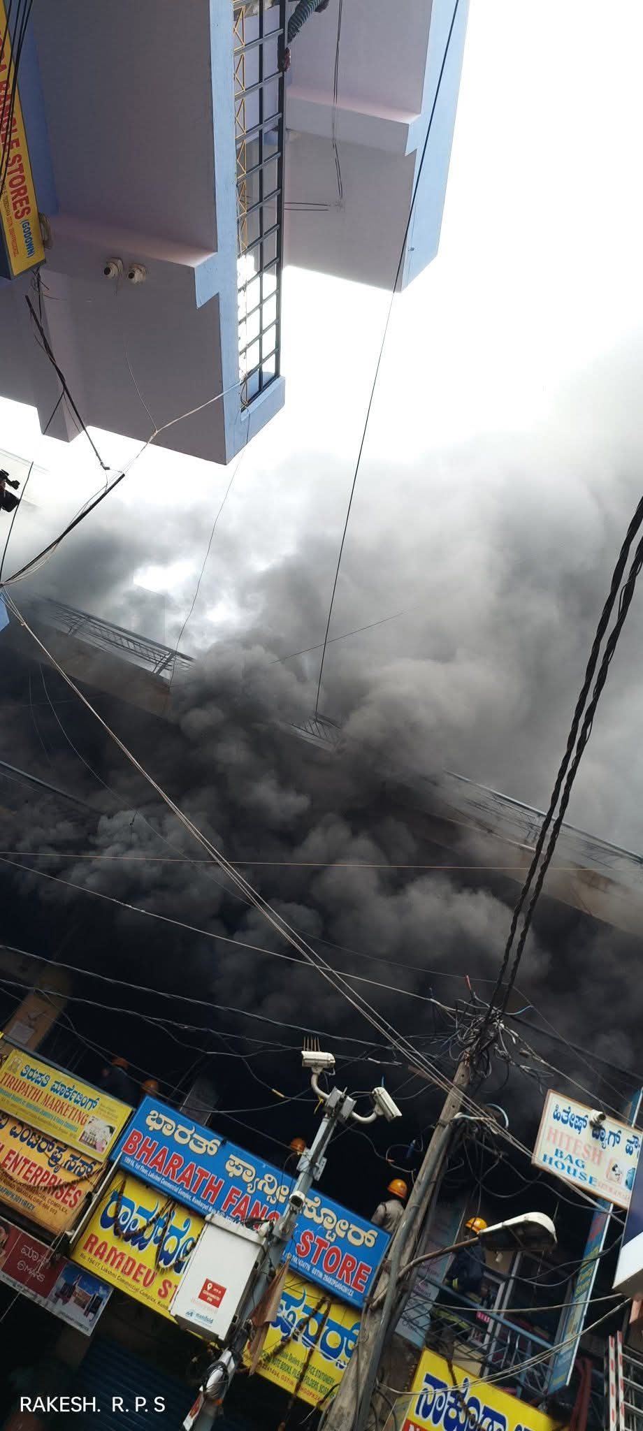 खबर बैंगलोर से जहां कुम्बारपेट मे एक हार्डवेयर की दुकान मे भीषण आग से लाखों का नुकसान