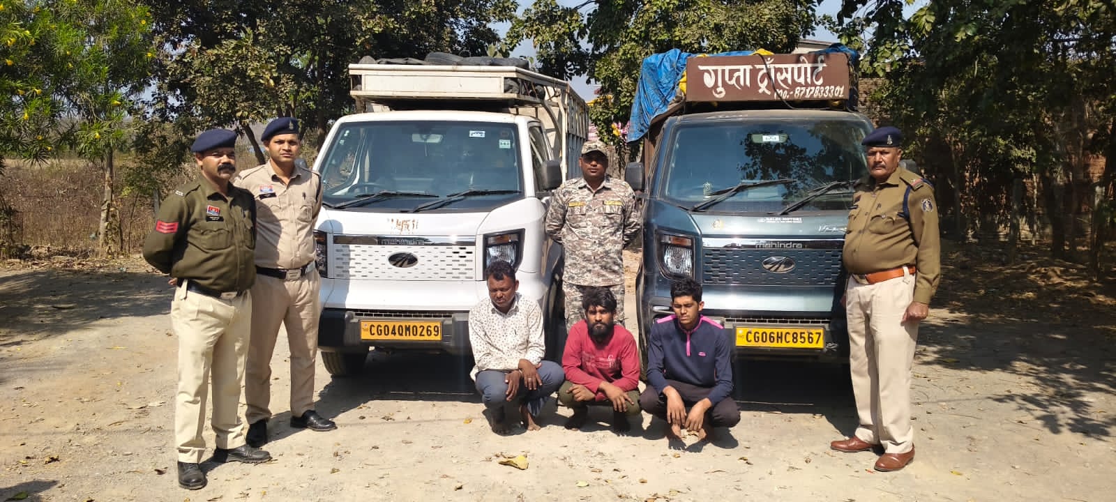 थाना प्रभारी उप निरीक्षक पुरेन्द्र मल्होत्रा की टीम (सउनि देवनारायण साहू, आरक्षक 68, 388, 283, 254, 271) द्वारा घेराबंदी कर दोनों वाहनों को पकड़ा गया।