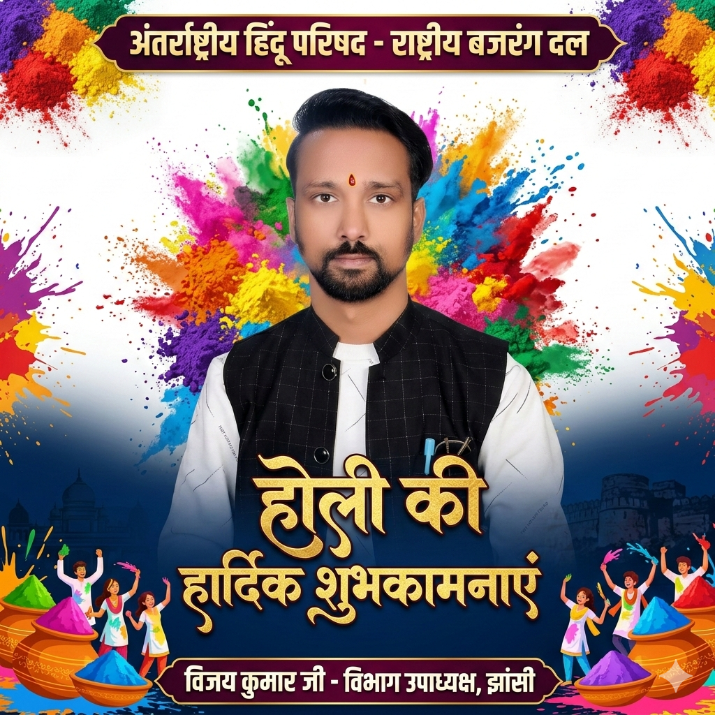झांसी में हर्षोल्लास के साथ मनाई जाएगी होली, अंतर्राष्ट्रीय हिंदू परिषद और राष्ट्रीय बजरंग दल ने दी शुभकामनाएँ