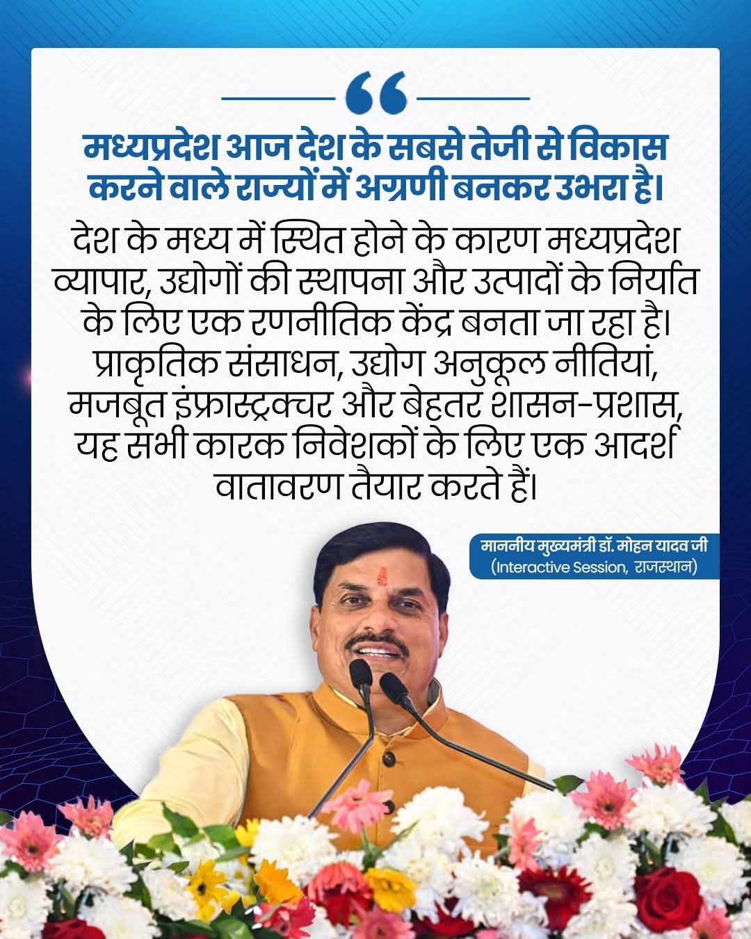 मध्यप्रदेश आज देश के सबसे तेजी से विकास करने वाले राज्यों में अग्रणी बनकर उभरा है। - श्री Dr Mohan Yadav मुख्यमंत्री म.प्र.