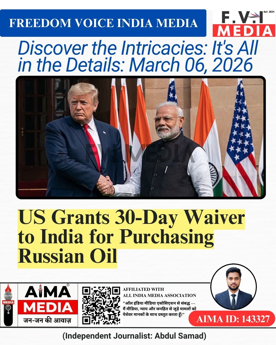 5 March 2026 ko United States Treasury Department ne India ke liye ek 30-day temporary waiver issue kiya hai jisse Indian refiners kuch Russian crude oil cargoes purchase kar sakte hain. Yeh permission sirf un shipments ke liye hai jo 5 March 2026 tak already ships par loaded the aur sea mein stranded the.