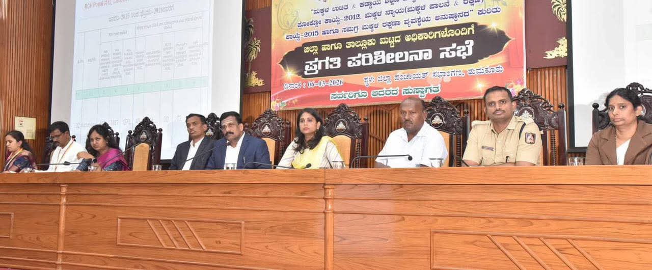 ದಿನಾಂಕ:06-03-2026ರಂದು ಕರ್ನಾಟಕ ರಾಜ್ಯ ಮಕ್ಕಳ ಹಕ್ಕುಗಳ ರಕ್ಷಣಾ ಆಯೋಗದ ಅಧ್ಯಕ್ಷರು ಹಾಗೂ ಸದಸ್ಯರು ತುಮಕೂರು, ಜಿಲ್ಲಾ ಪಂಚಾಯತ್ ಸಭಾಂಗಣ, ತುಮಕೂರು ಇಲ್ಲಿ ಜಿಲ್ಲಾ ಹಾಗೂ ತಾಲ್ಲೂಕು ಮಟ್ಟದ ವಿವಿಧ ಇಲಾಖೆಗಳ ಅಧಿಕಾರಿಗಳೊಂದಿಗೆ ಆರ್.ಟಿ.ಇ ಕಾಯ್ದೆ 2009, ಪೊಕ್ಸೊ, ಬಾಲ್ಯವಿವಾಹ ನಿಷೇಧ ಕಾಯ್ದೆ ಹಾಗೂ ಬಾಲನ್ಯಾಯ ಕಾಯ್ದೆ 2015ರ ಅನುಷ್ಠಾನ ಹಾಗೂ ಮಕ್ಕಳಿಗೆ ಸಂಬಂಧಿಸಿದ ವಿವಿಧ ಕಾರ್ಯಕ್ರಮ/ಯೋಜನೆಗಳ ಕುರಿತು ಪ್ರಗತಿ ಪರಿಶೀಲನಾ ಸಭೆಯನ್ನು ನಡೆಸಲಾಯಿತು.