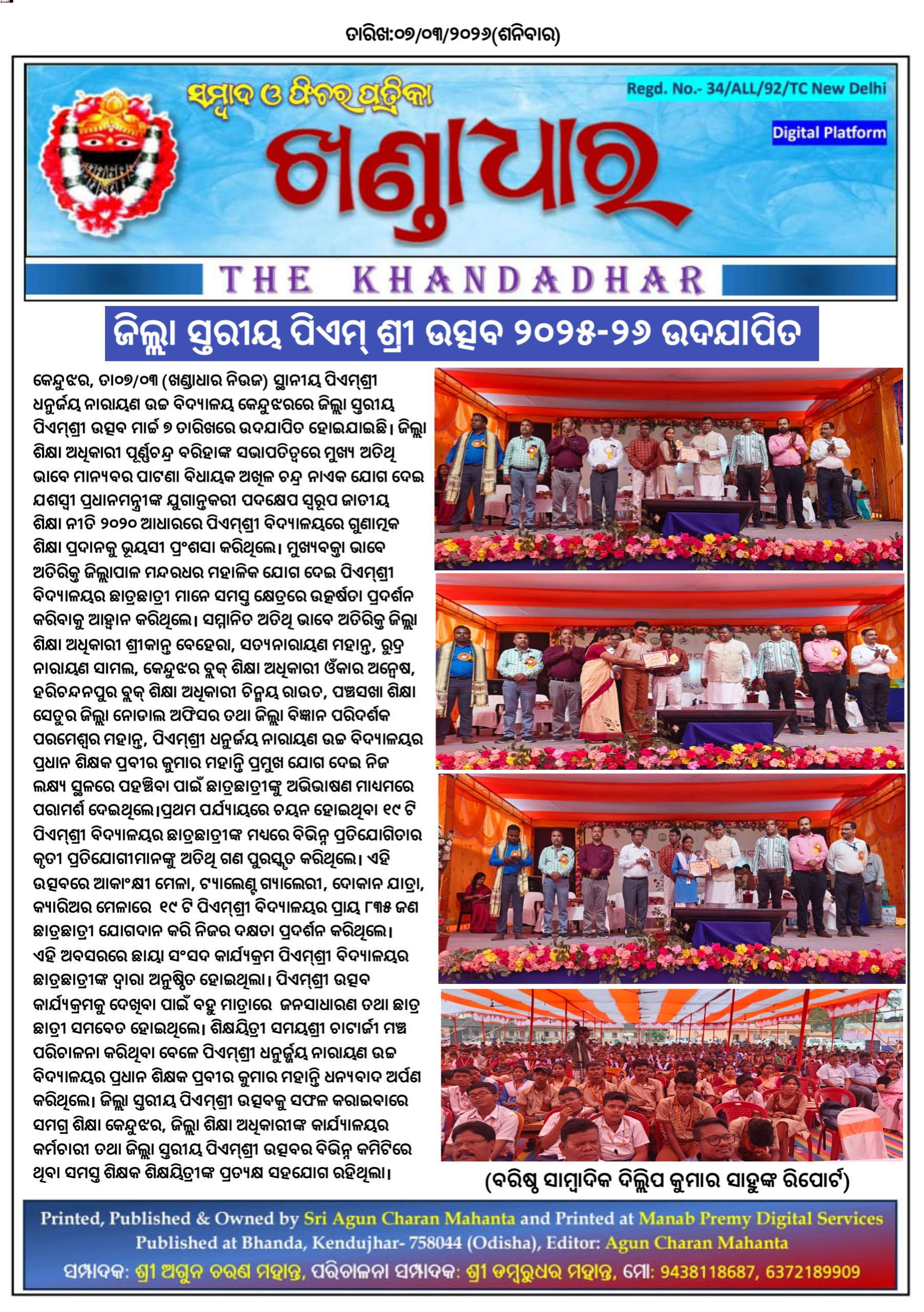 ଜିଲ୍ଲା ସ୍ତରୀୟ ପିଏମ୍ ଶ୍ରୀ ଉତ୍ସବ ୨୦୨୫-୨୬ ଉଦଯାପିତ।